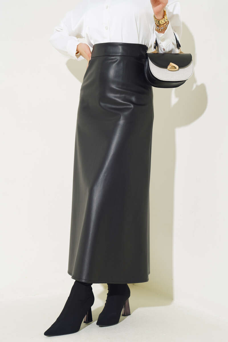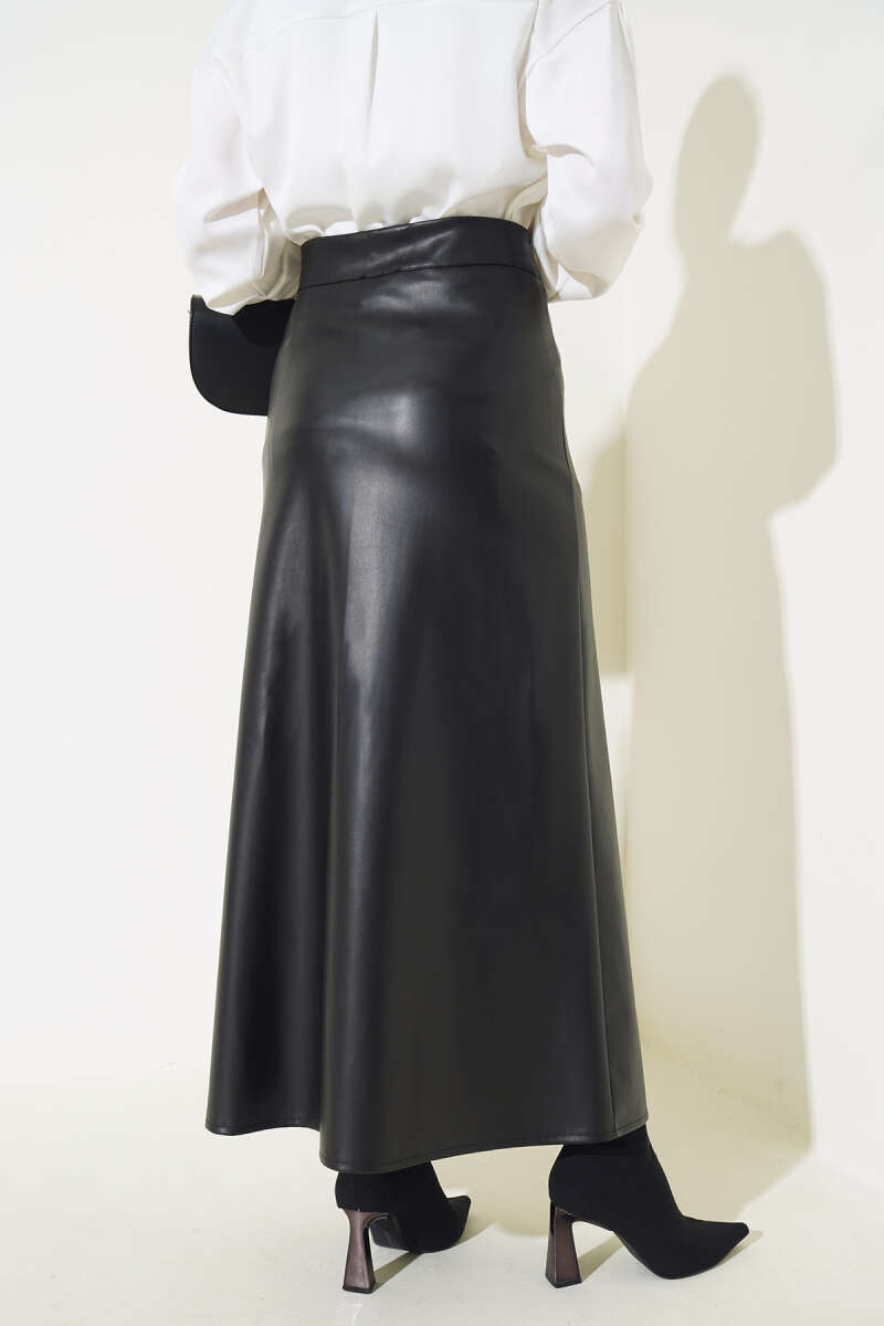 Loyşa Bel Lastikli Kemerli Etek Siyah