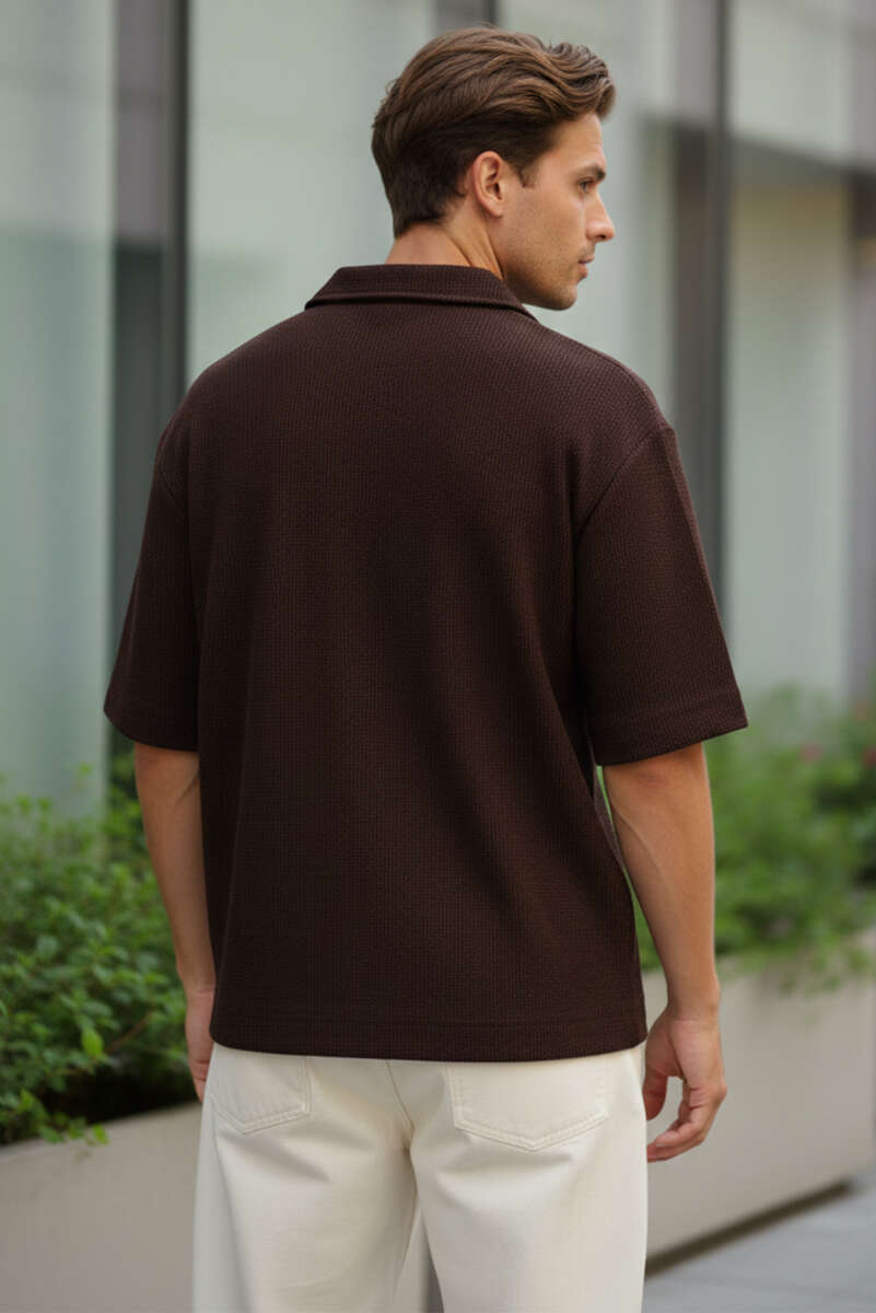 Fermuarlı Detaylı Kısa Kol Gömlek Kahve