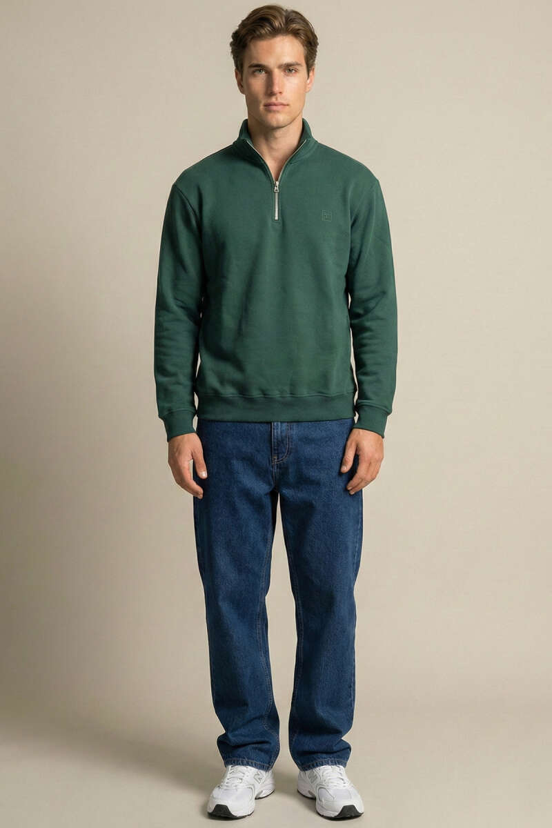 Fermuarlı Dik Yaka Erkek Sweaatshirt Nefti