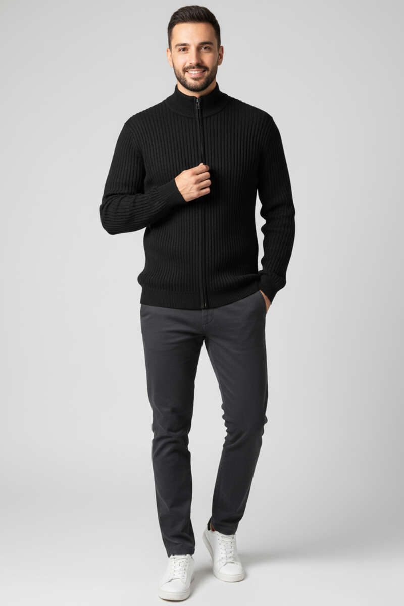 Fermuarlı Dik Yaka Erkek Triko Hırka Siyah