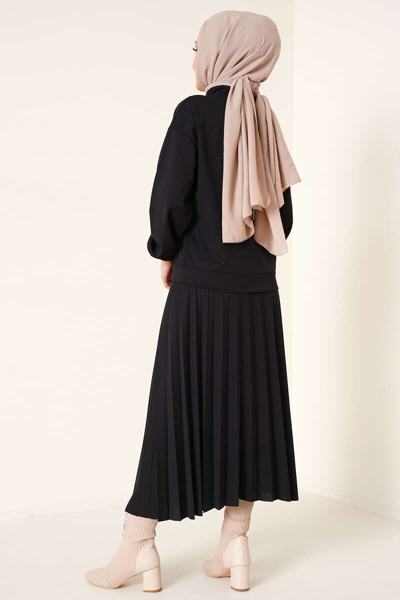 Yeni sezon etek takımımız harika kombiniyle şimdi sizlerle birlikte. Tuniğimizin yakası fermuarlıdır. Kanguru cebi bulunmaktadır. Bilekleri lastiklidir. Eteğimizin piliseli ve beli lastiklidir. Her ortamda giyebileceğiniz tasarıma sahiptir. Farklı renk seçenekleri mevcuttur.