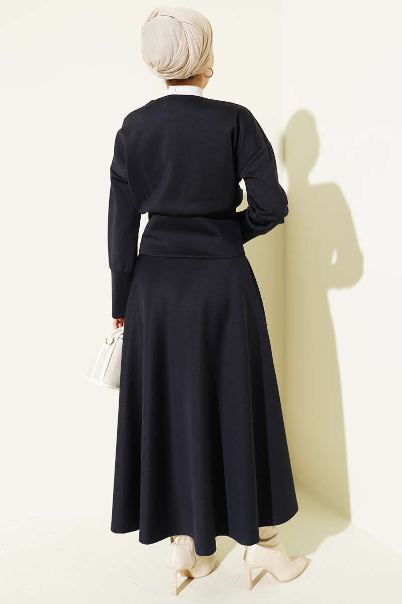 Fermuarlı Etekli Scuba İkili Takım Siyah