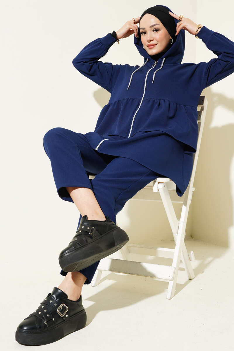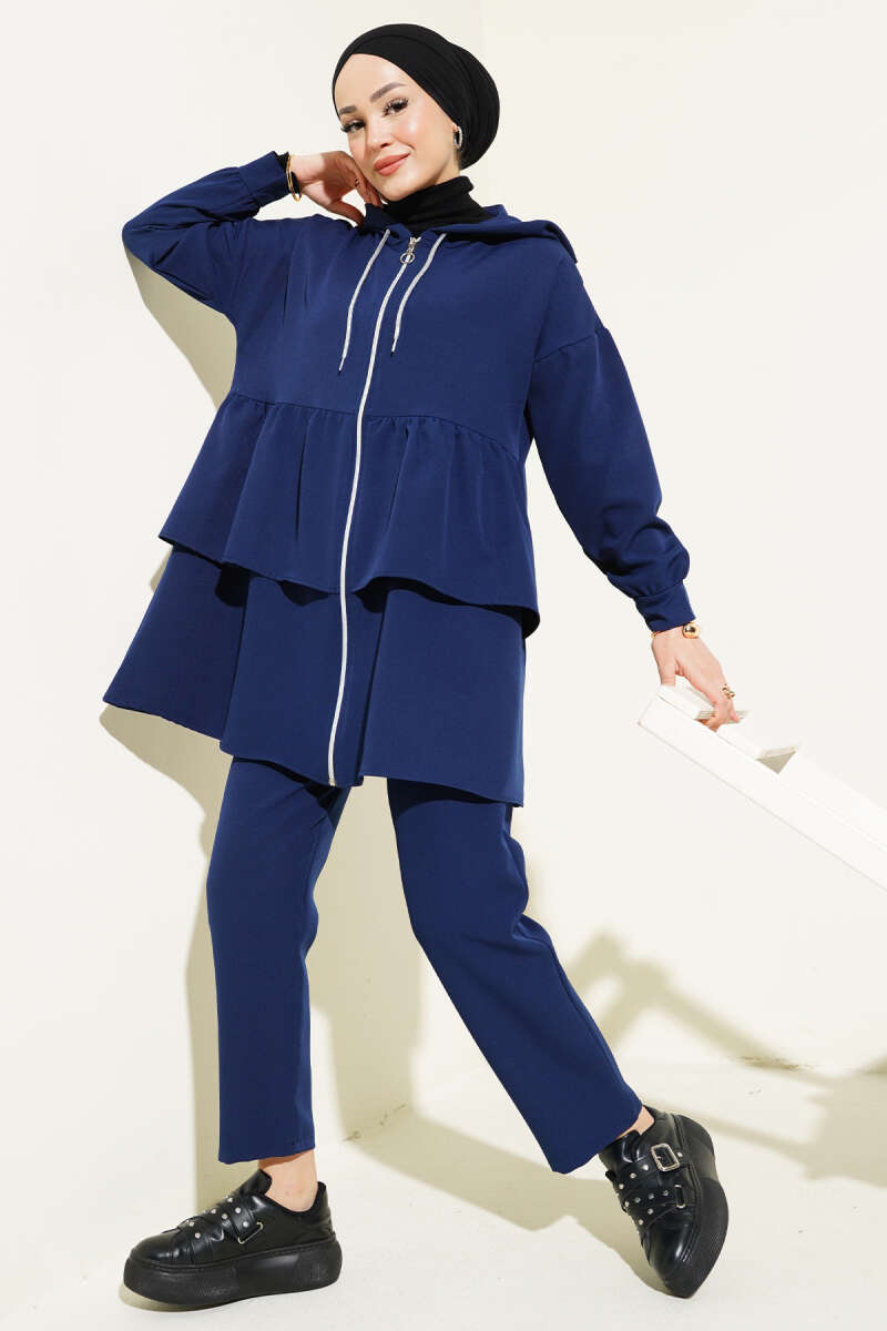 Fermuarlı Fırfırlı Dabıl İkili Takım Lacivert