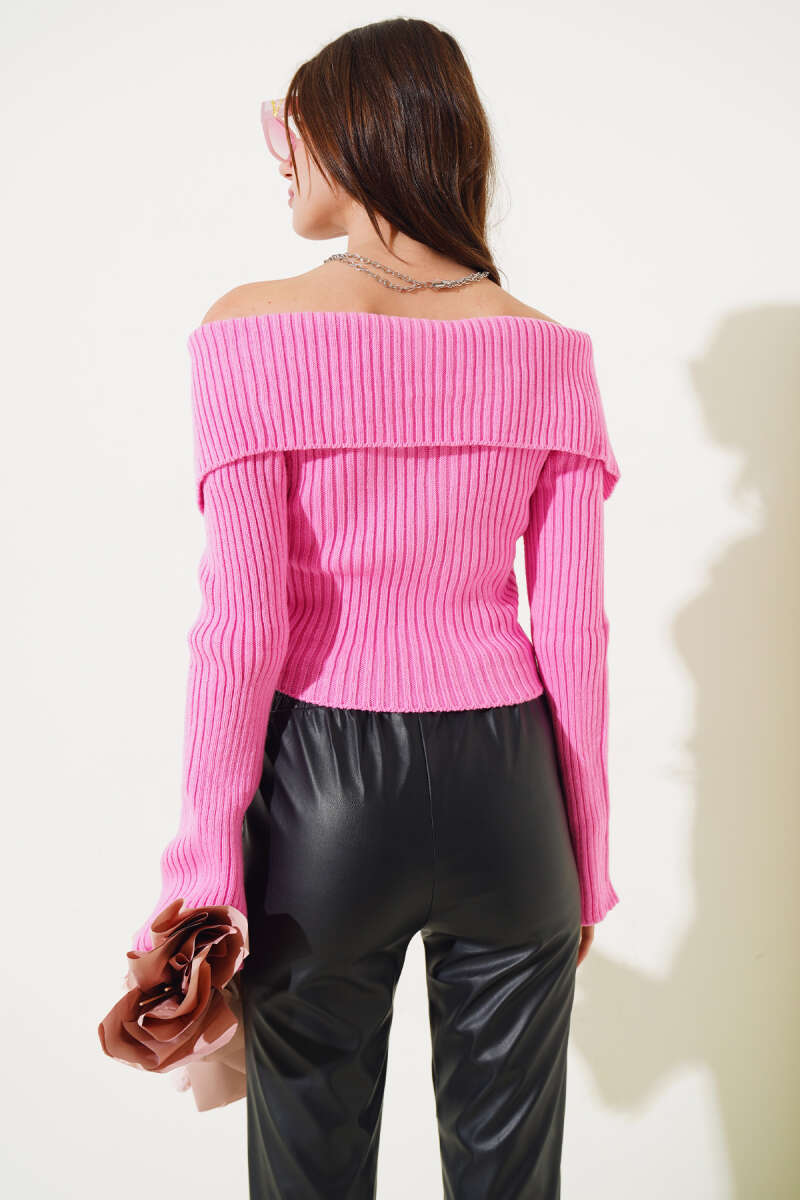 Fermuarlı Fitilli Kısa Triko Hırka Pembe