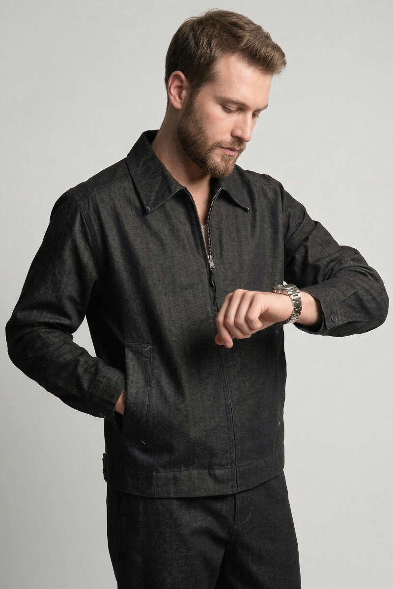 Gömlek Yaka Fermuarlı Erkek Bomber Ceket Siyah