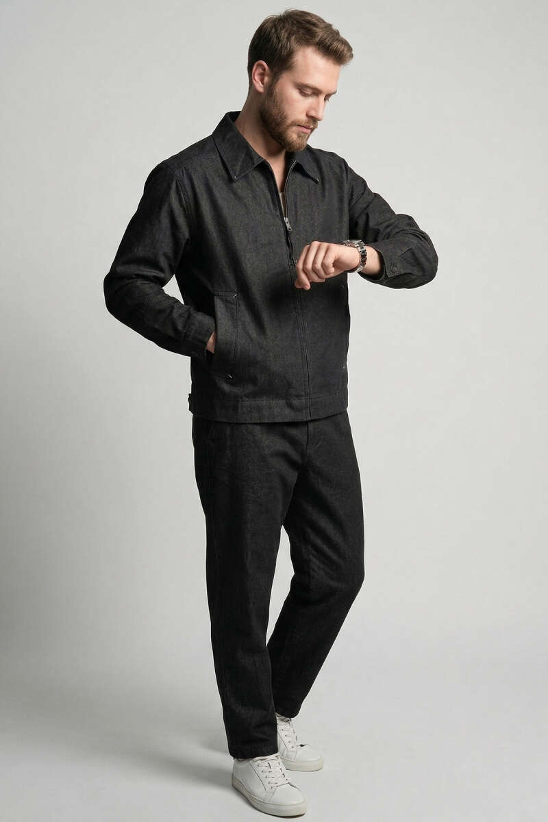 Dik Yaka Tensel Erkek Ceket Siyah