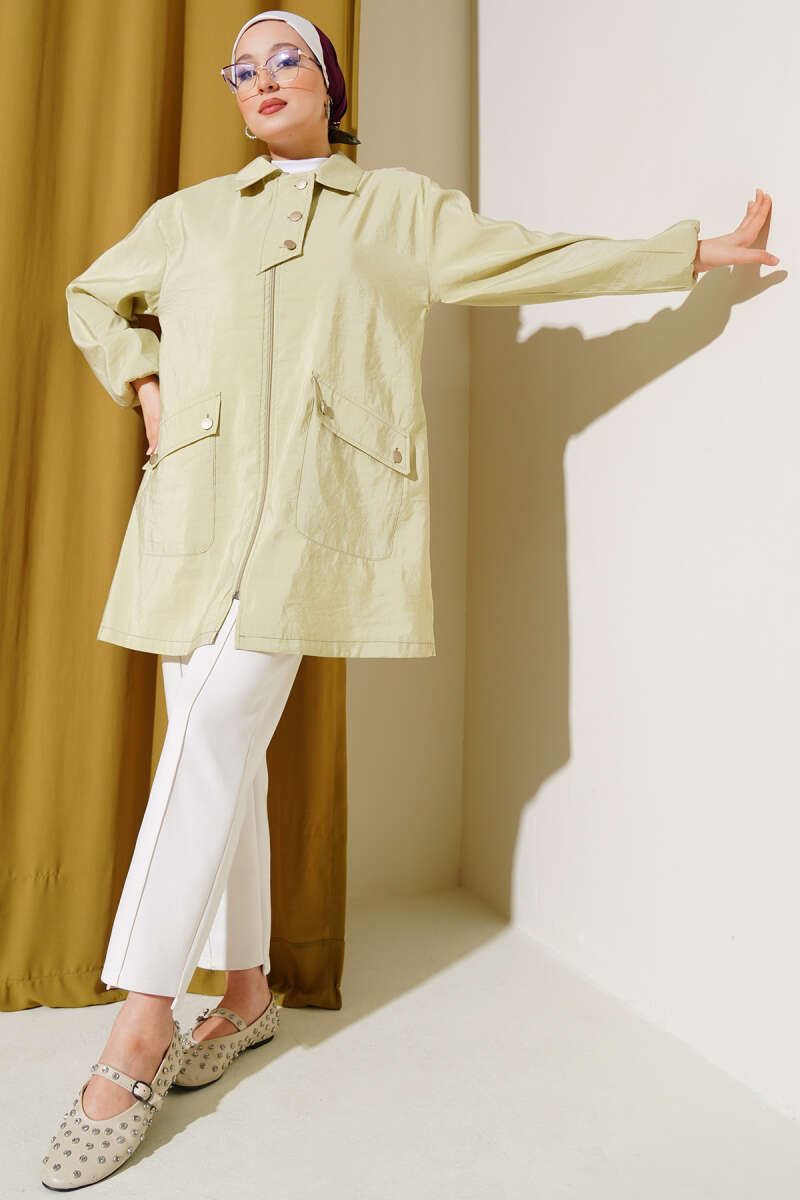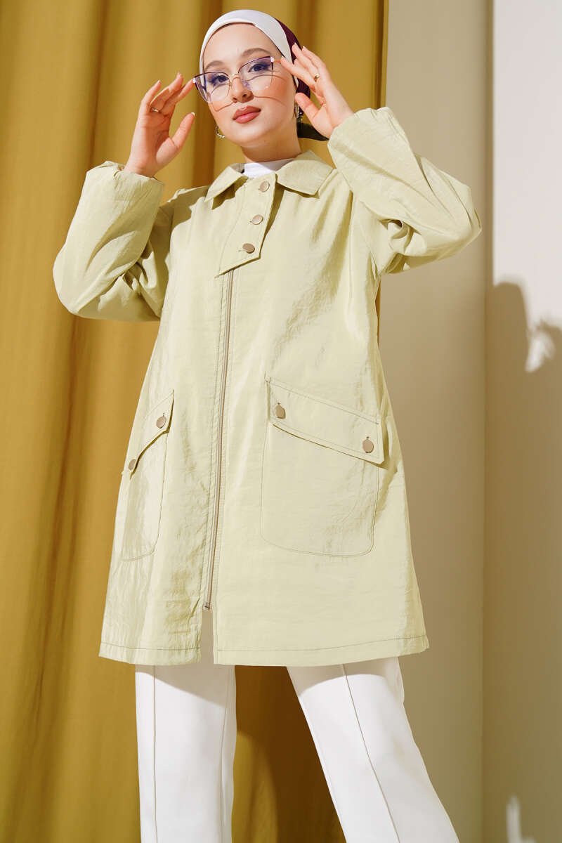 Fermuarlı Gömlek Yaka Kap Çağla Yeşili