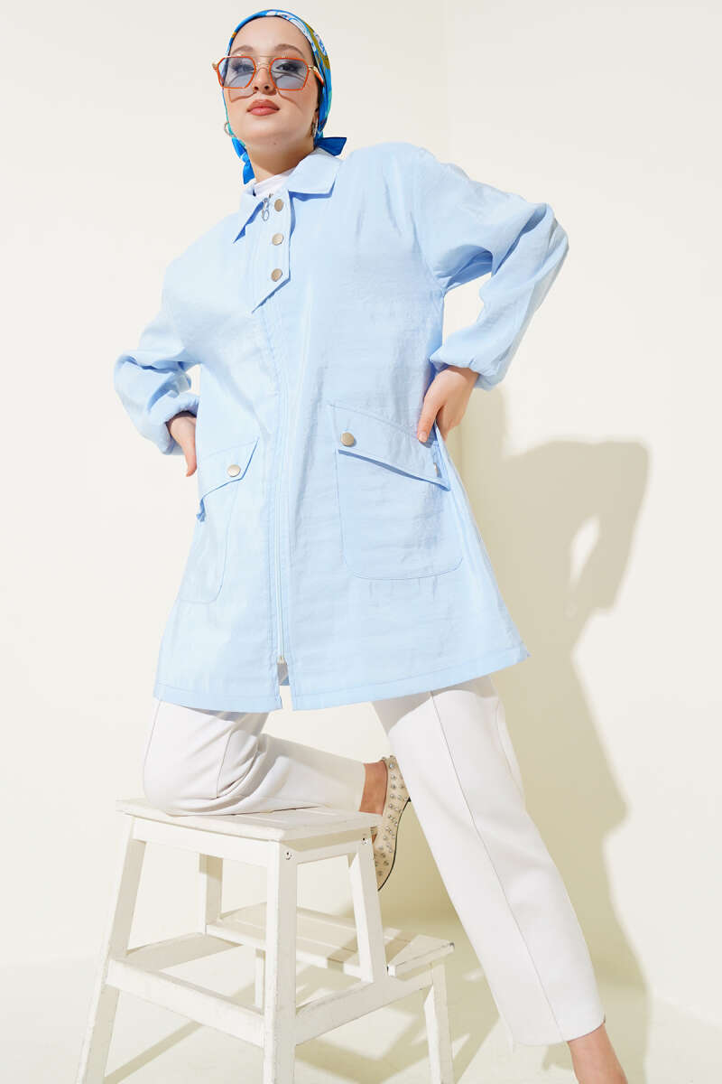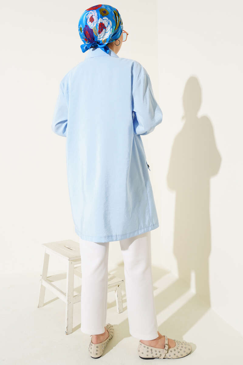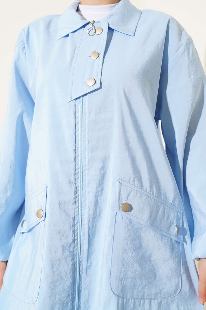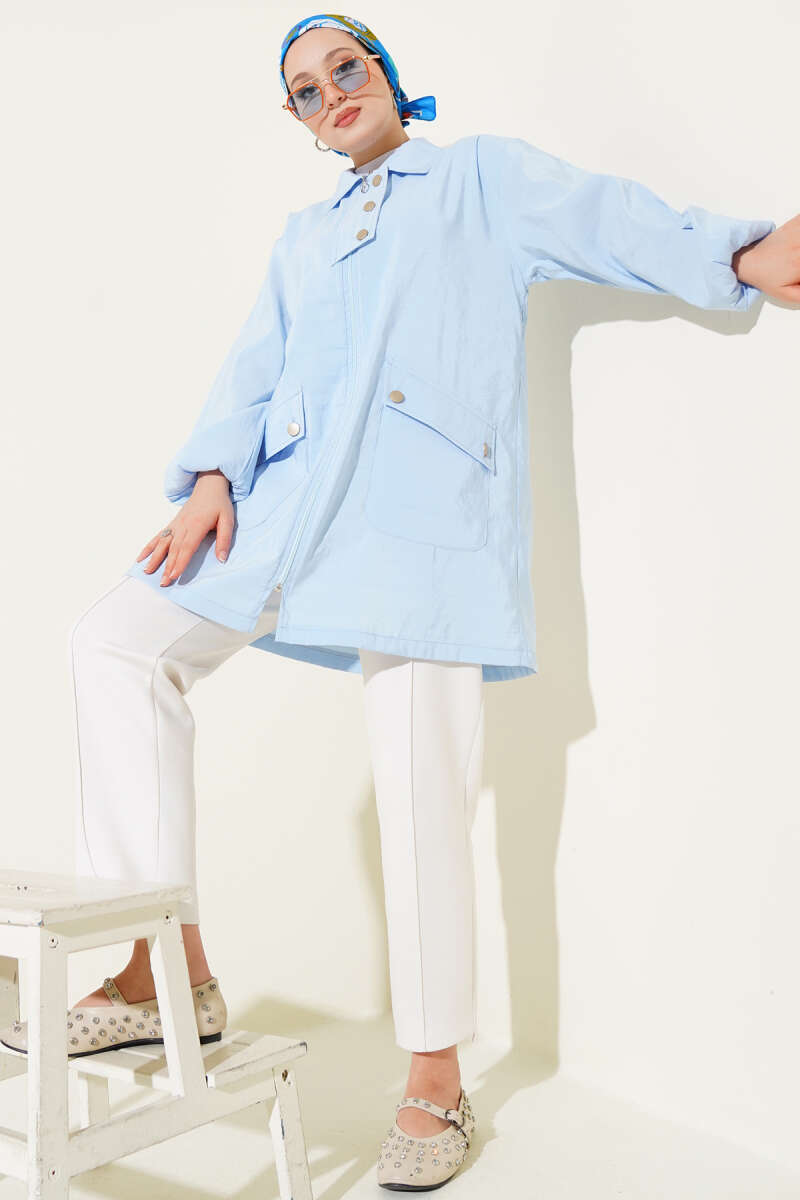 Kruvaze Yaka Düğmeli Kürklü Mont Taş