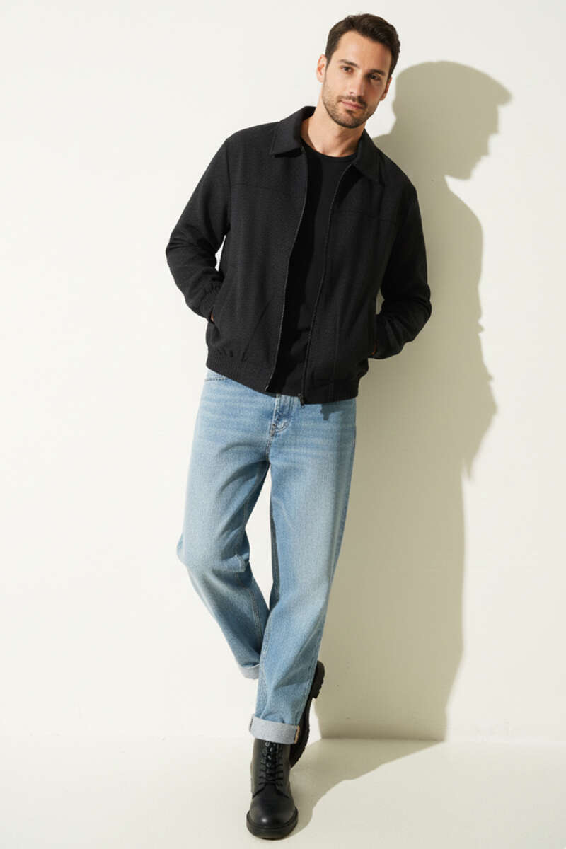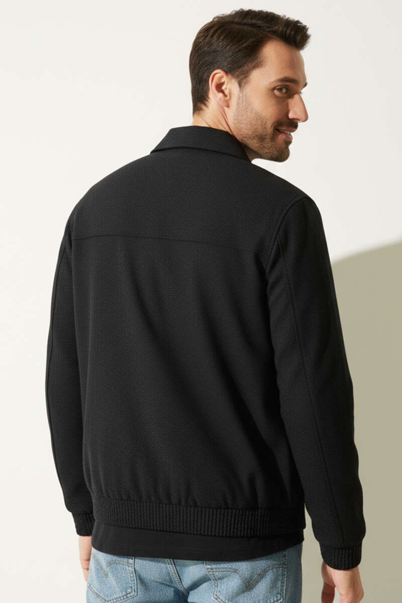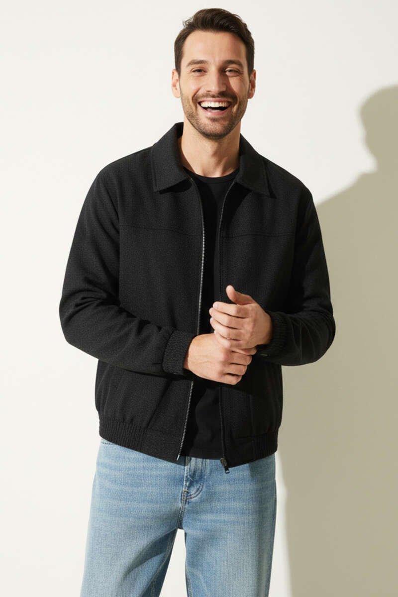 Fermuarlı Gömlek Yaka Mevsimlik Erkek Mont Siyah