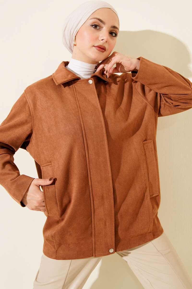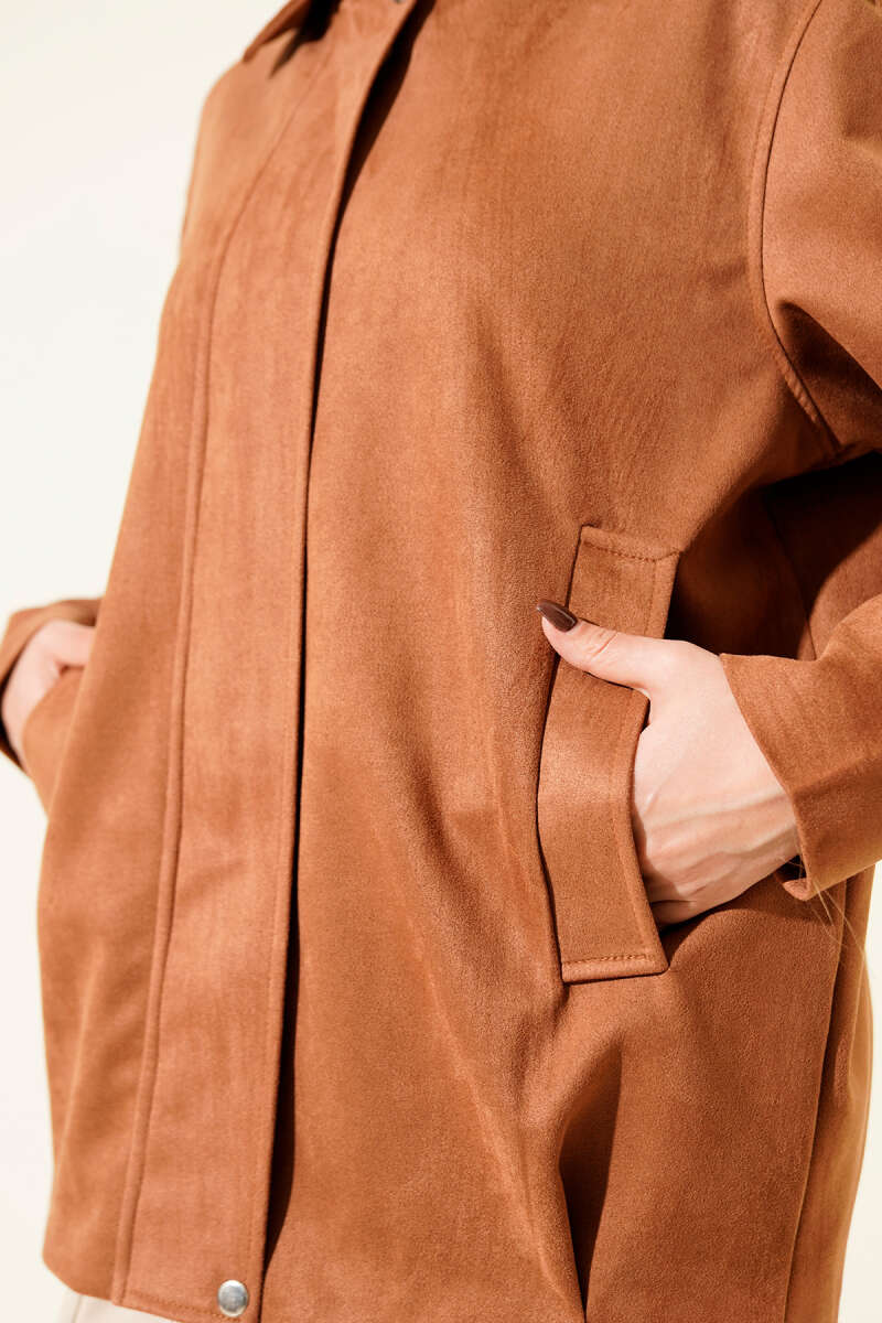 Fermuarlı Gömlek Yaka Süet Ceket Bej