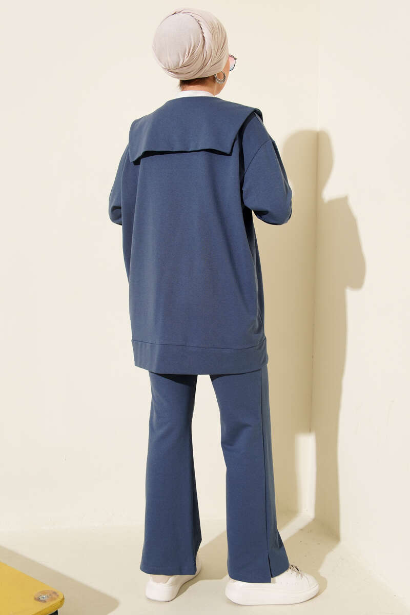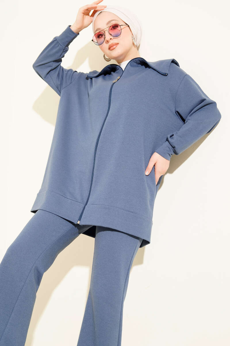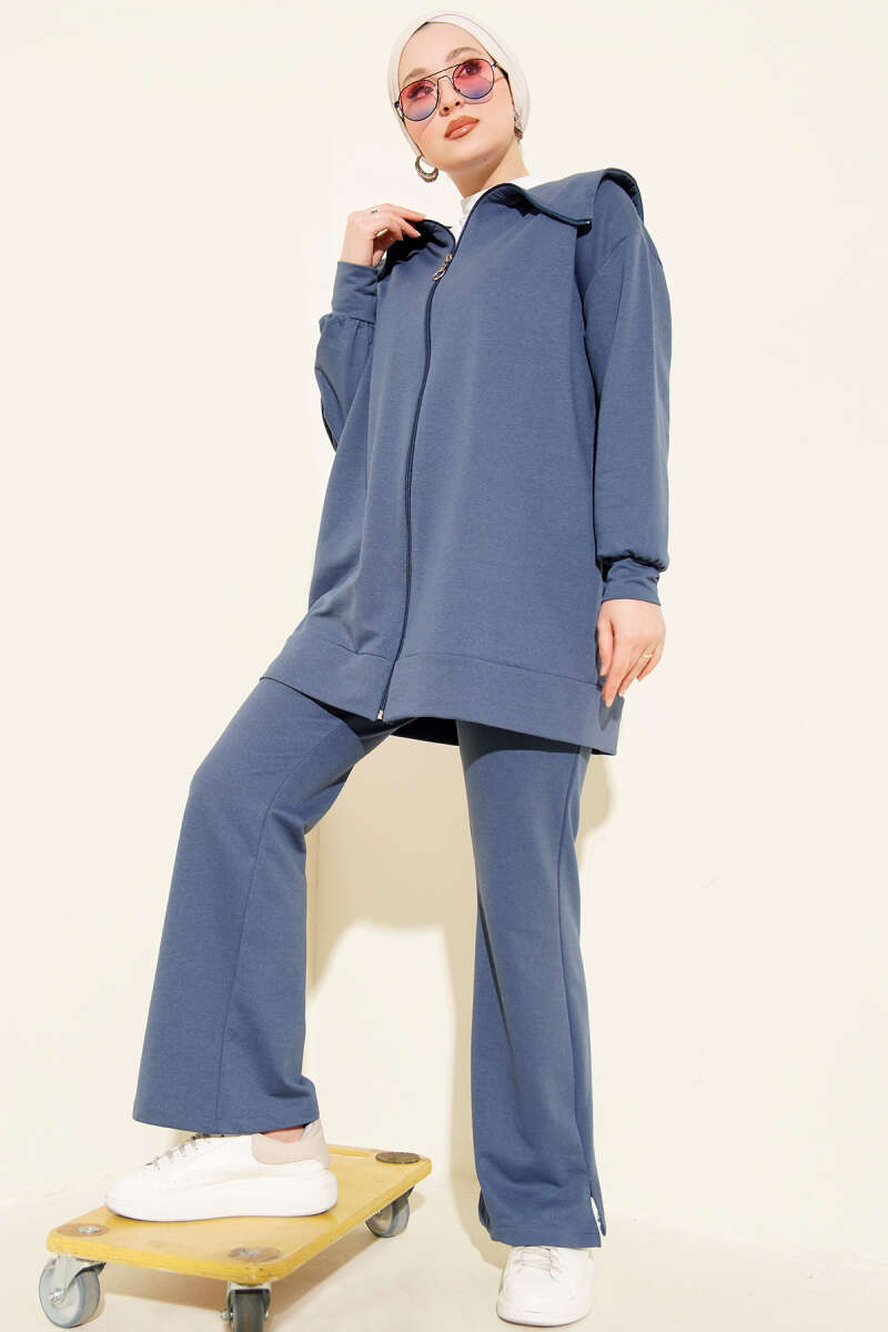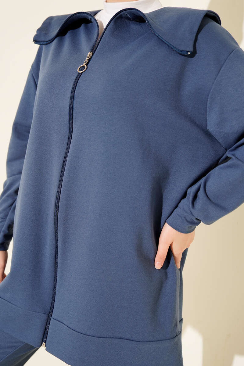 Kapüşonlu Fermuarlı Kot İkili Takım Kot Mavisi