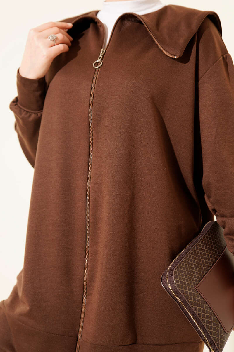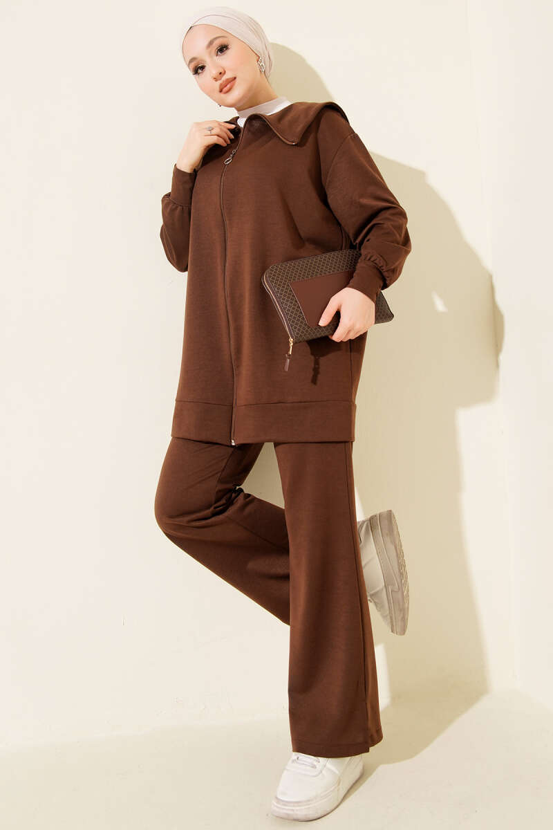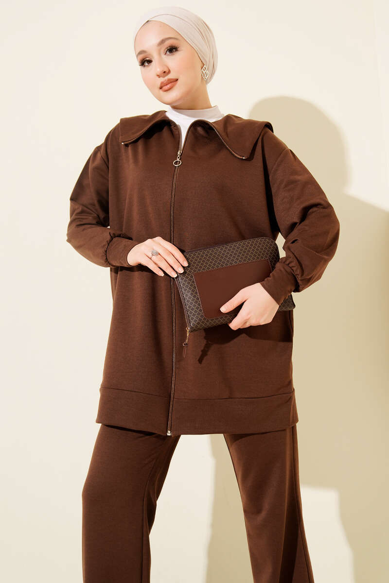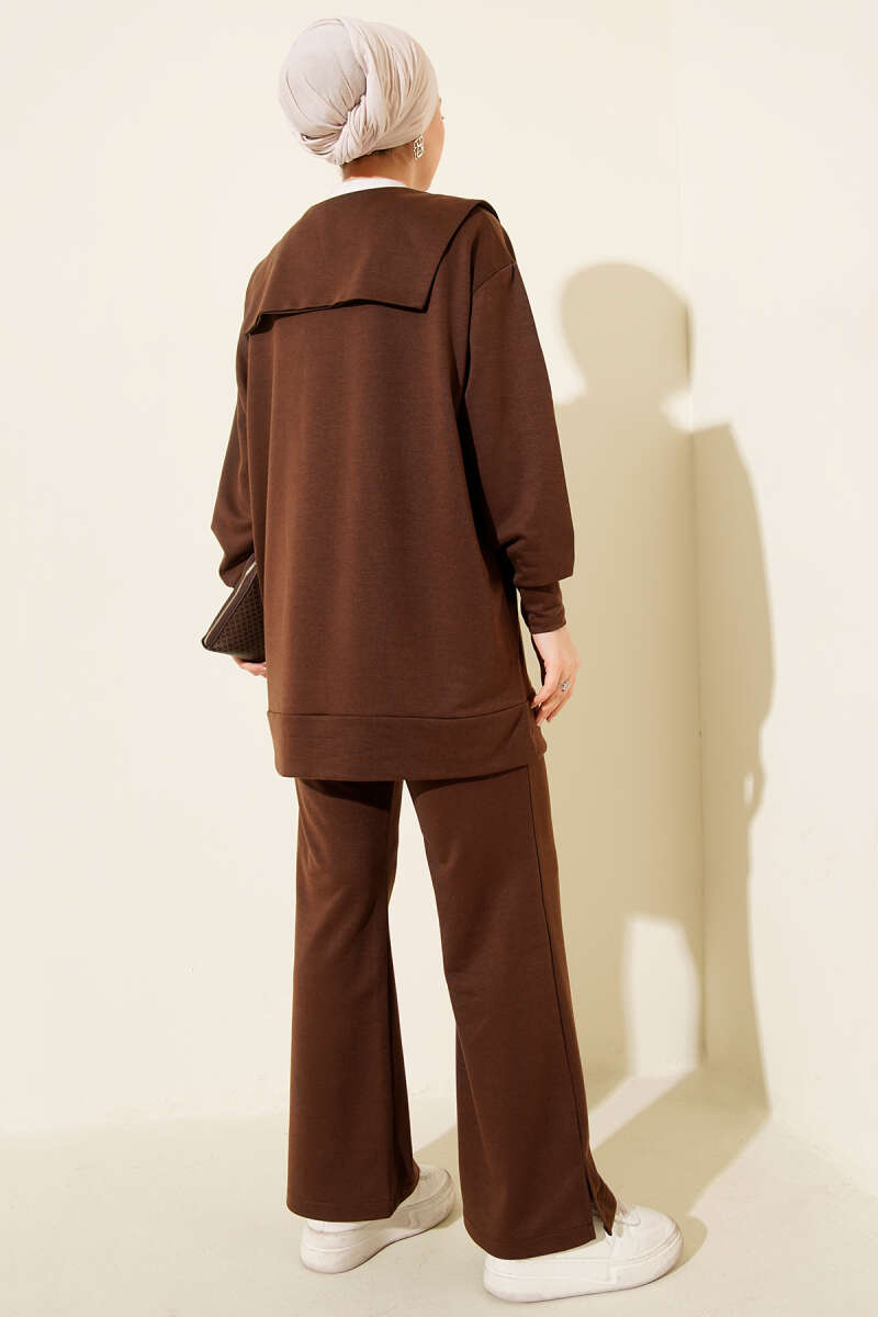 Çoban Dikişli Triko Tunik İkili Takım Kahve