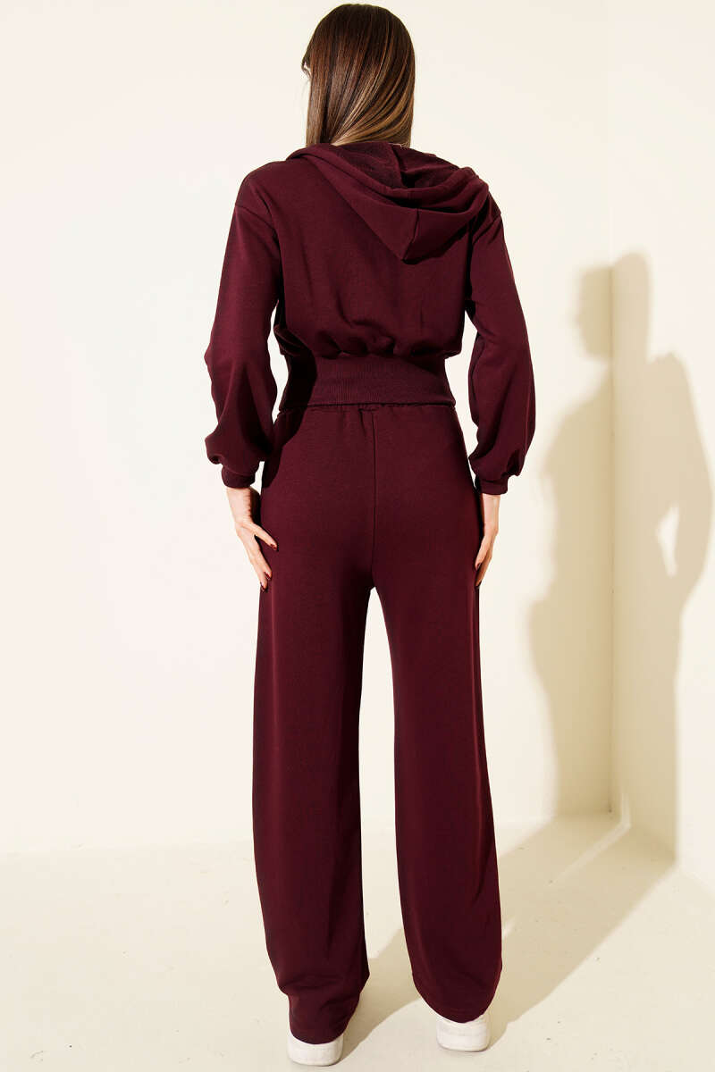 Fermuarlı Kapüşonlu Kısa Hırkalı İkili Takım Füme