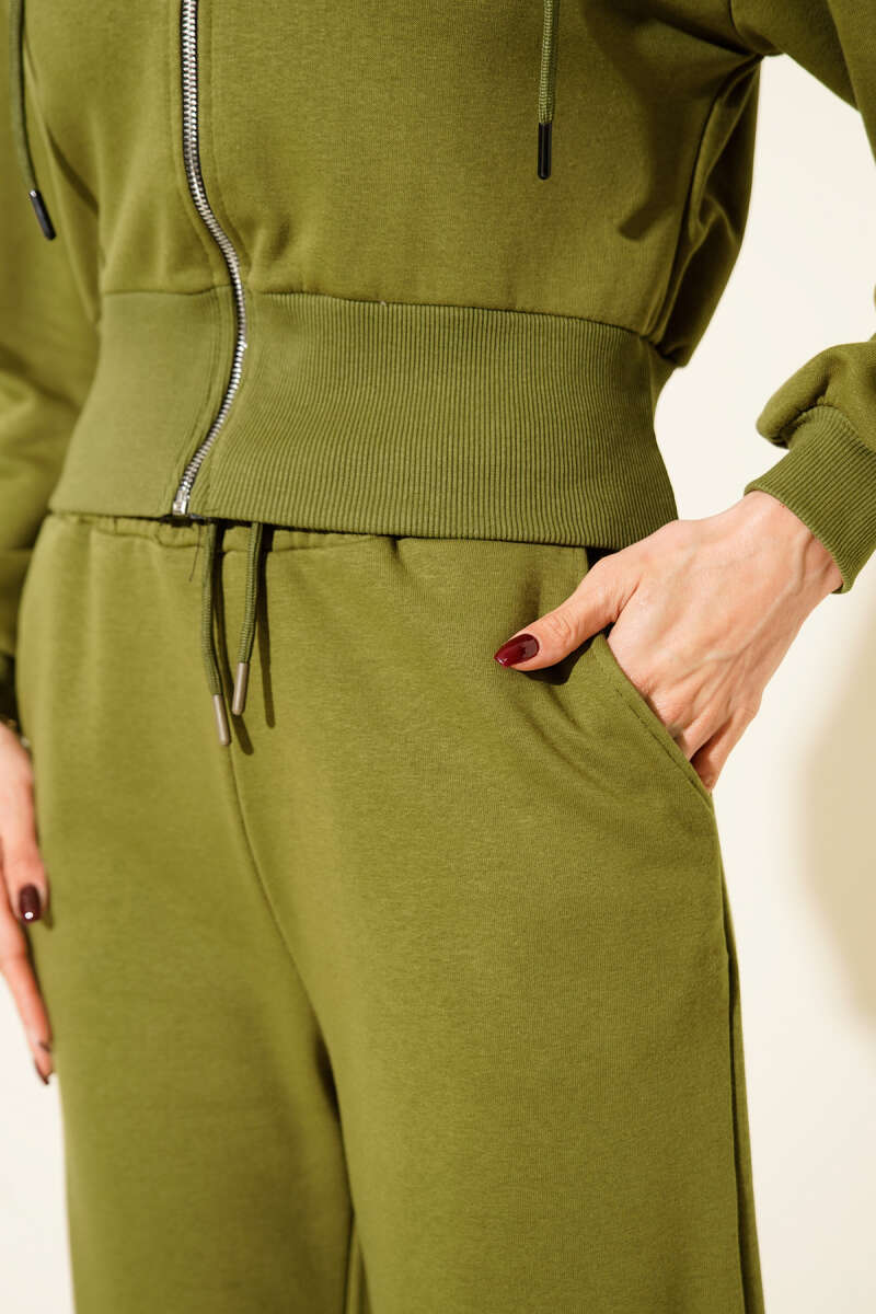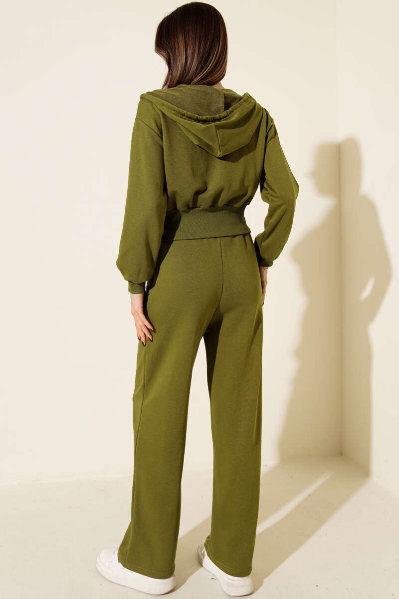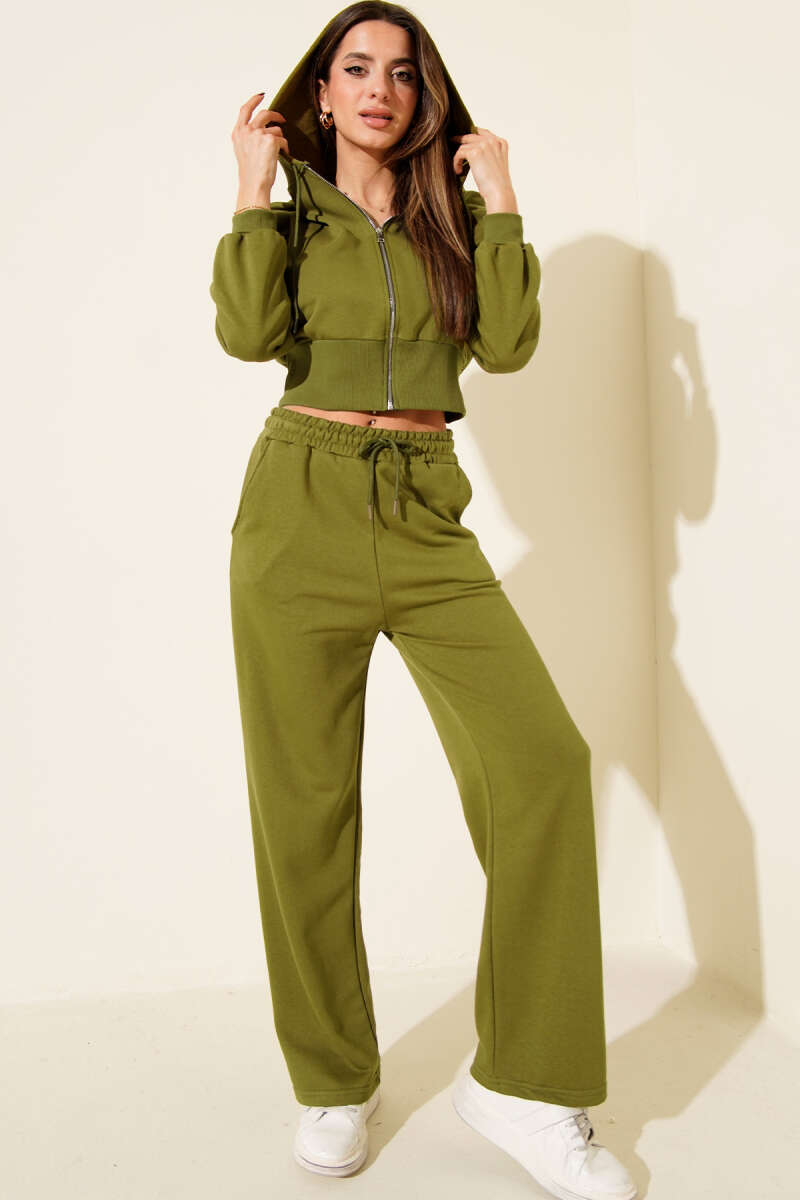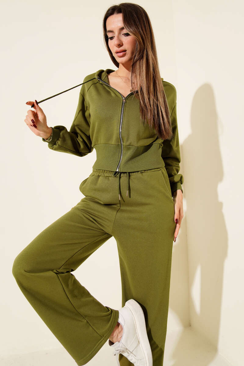Fermuarlı Kapüşonlu Kısa Hırkalı İkili Takım Füme