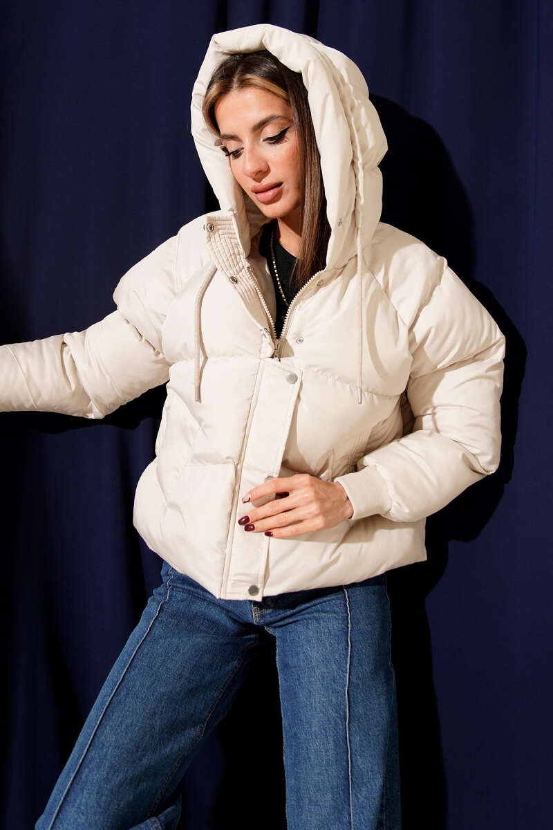 Fermuarlı Kapüşonlu Kısa Şişme Mont Siyah