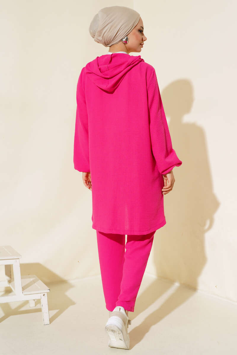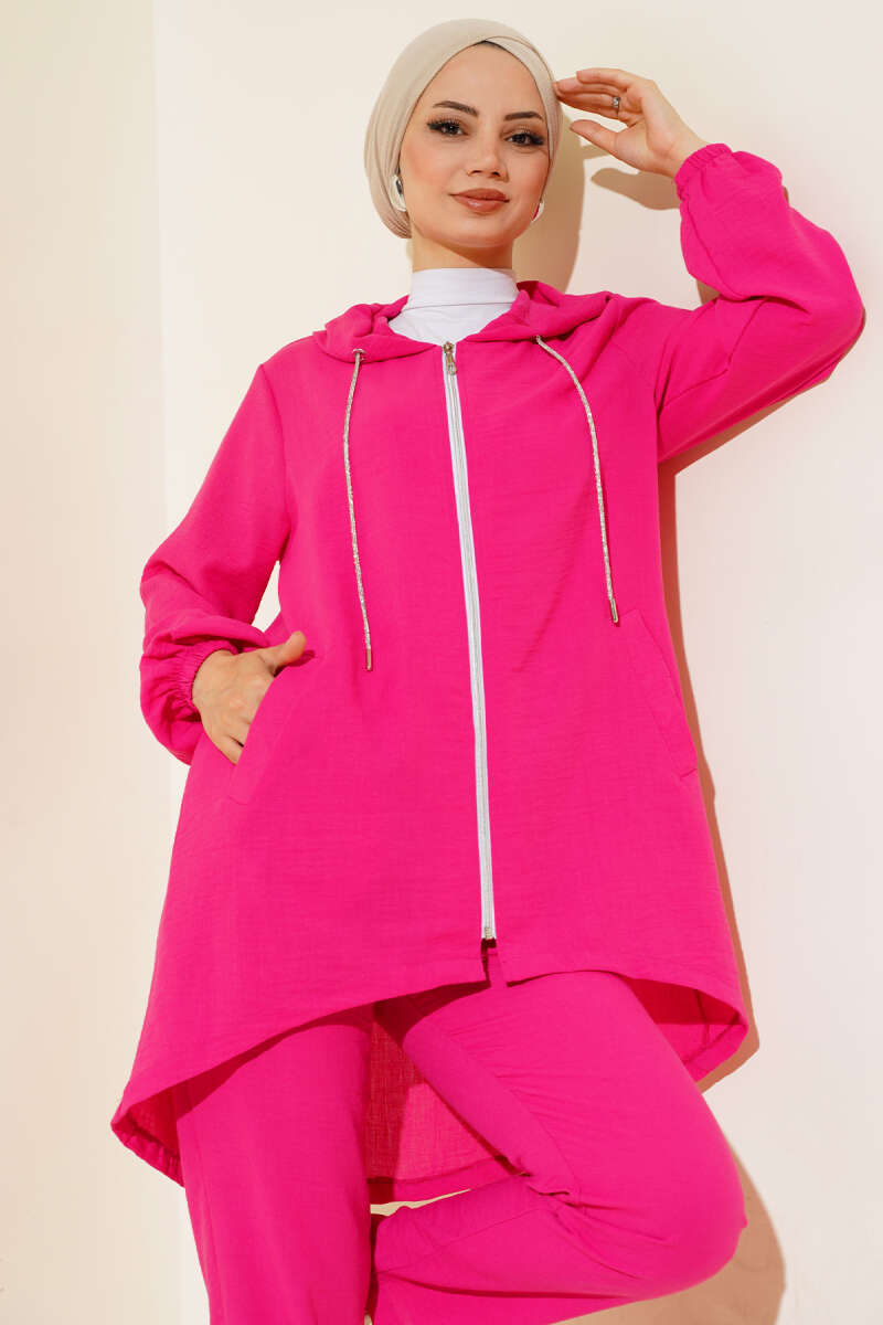 Fermuarlı Kapüşonlu Salaş İkili Takım Fuşya