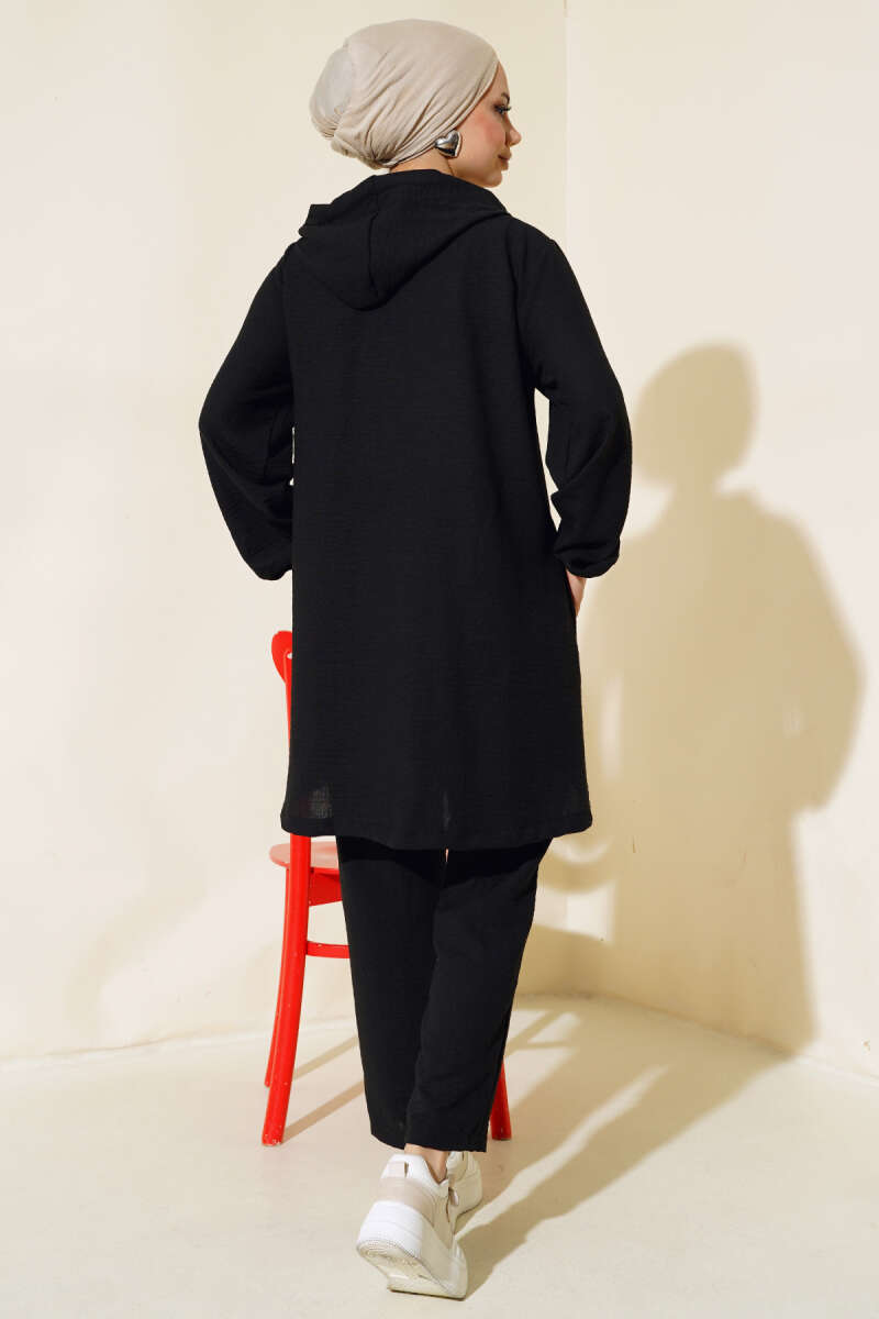 Fermuarlı Kapüşonlu Salaş İkili Takım Siyah