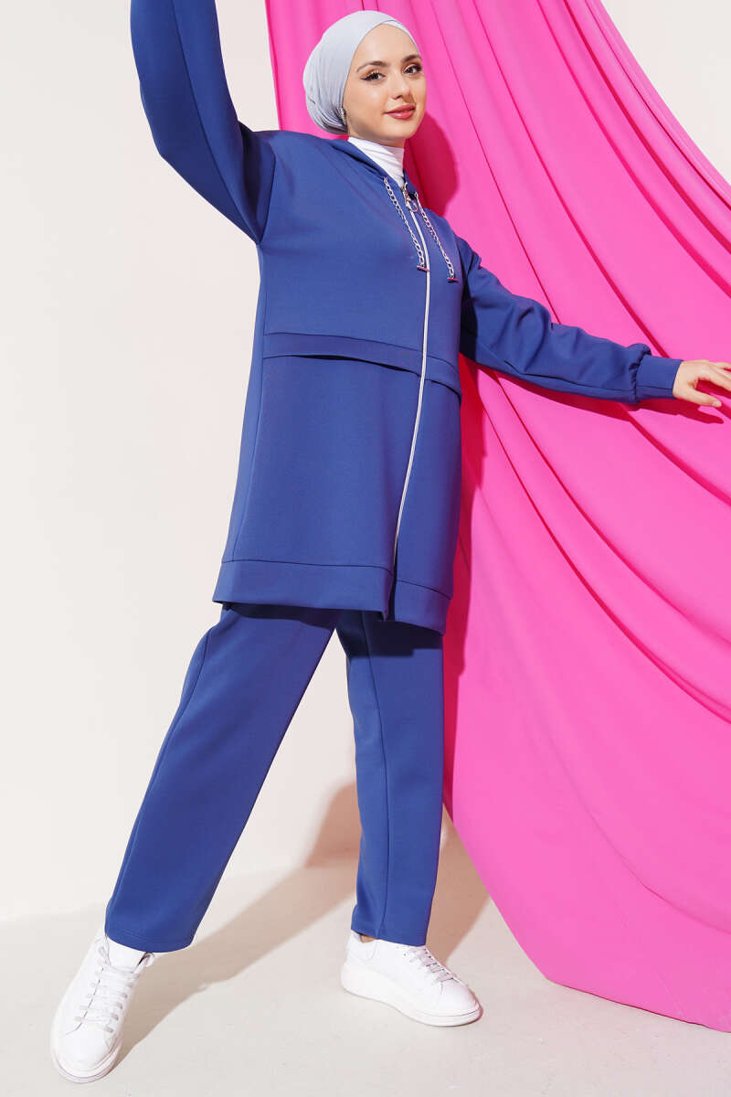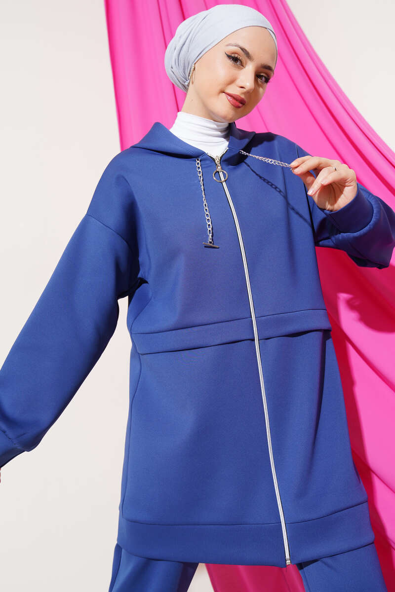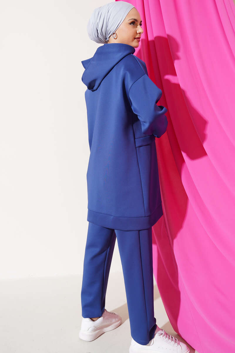 Fermuarlı Kapüşonlu Scuba İkili Takım İndigo