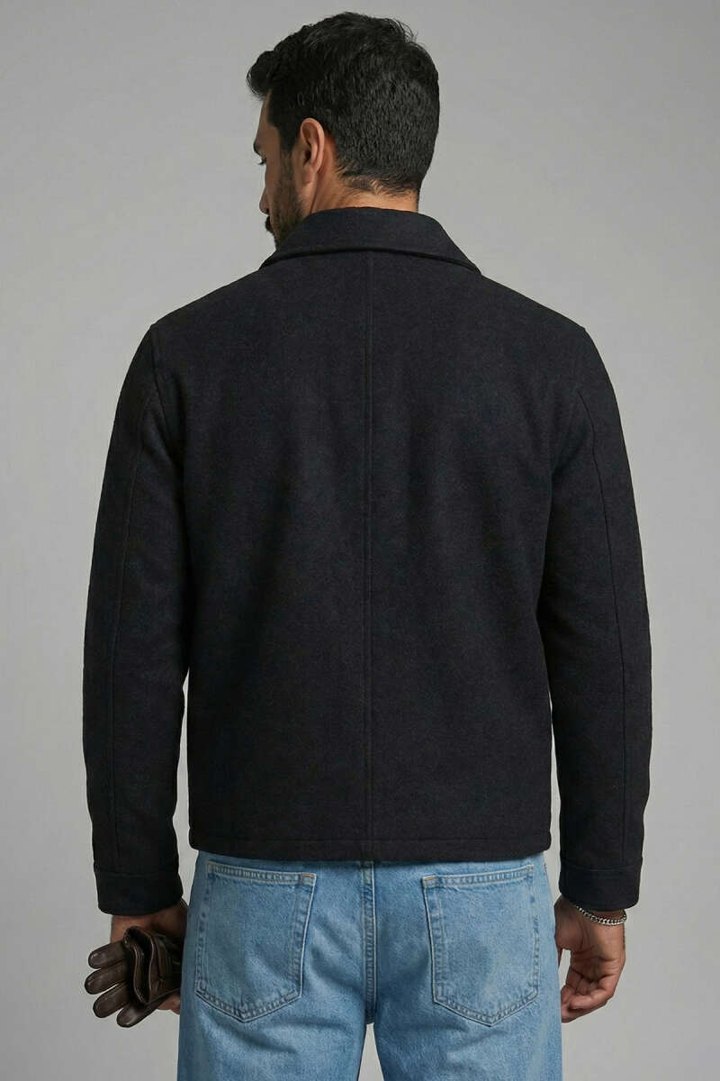 Gold Düğmeli Ribanalı Kaşe Kaban Gri