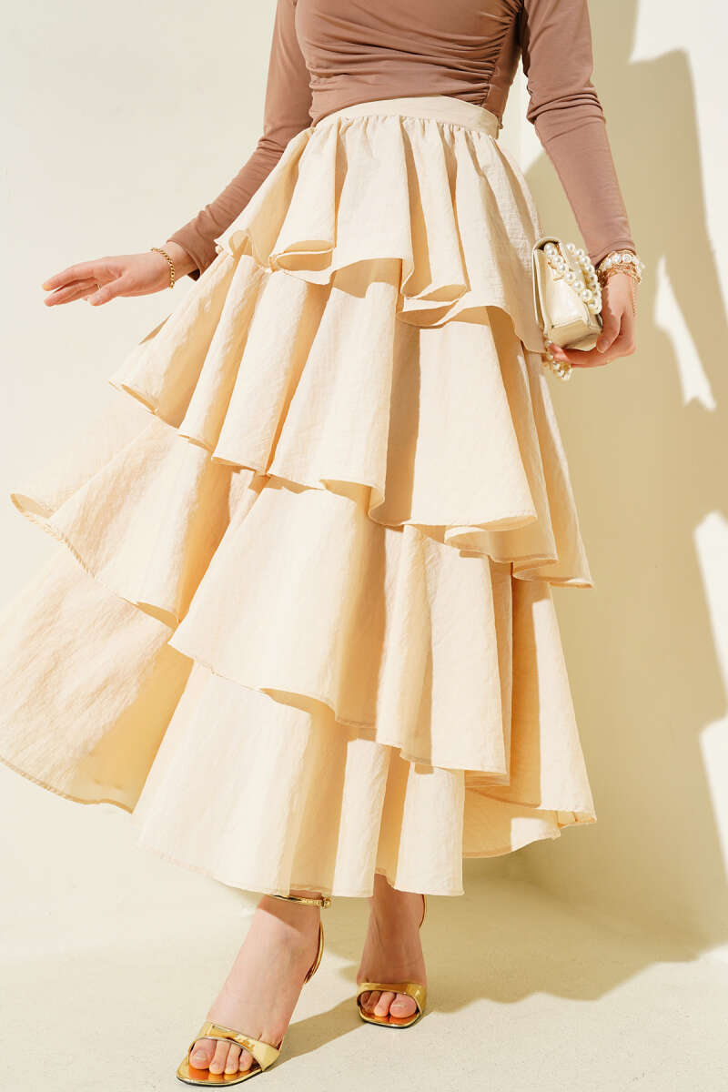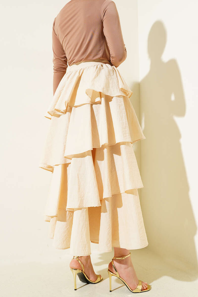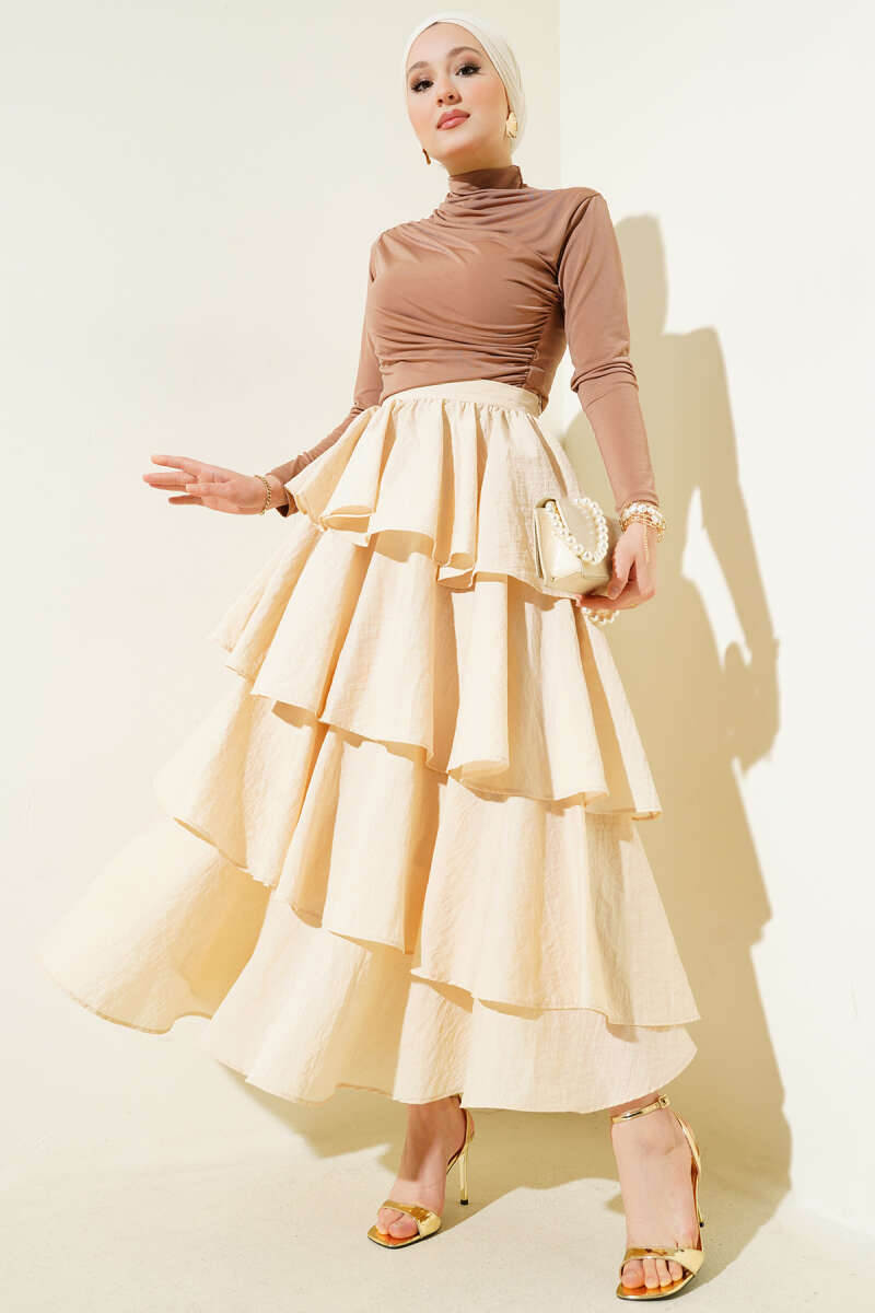 Beli Lastikli Ekoseli Basic Etek Kahve