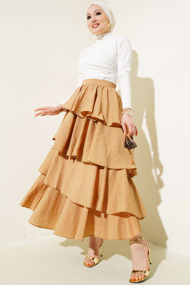 Bel Lastikli Scuba Çan Etek Bej