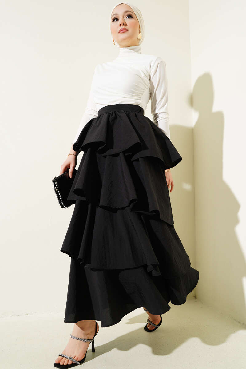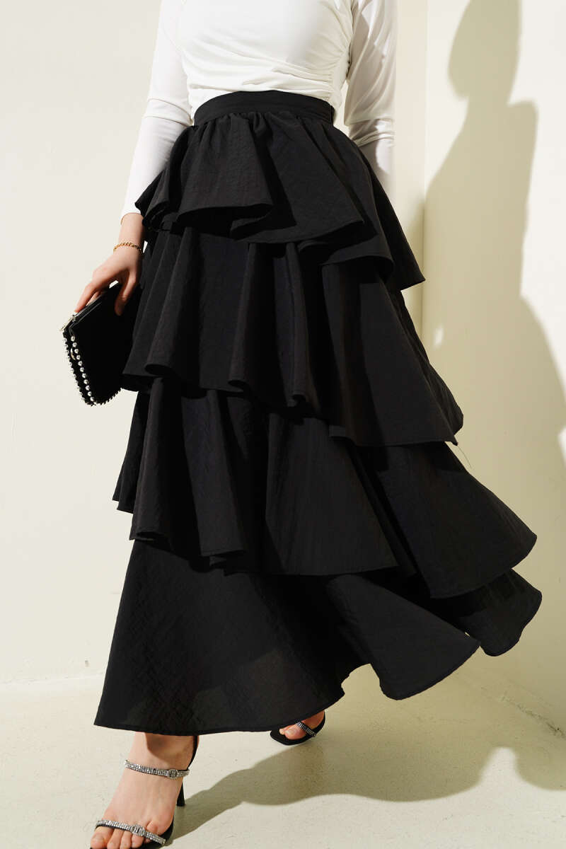 Ekose Desenli Kloş Dabıl Etek Antrasit