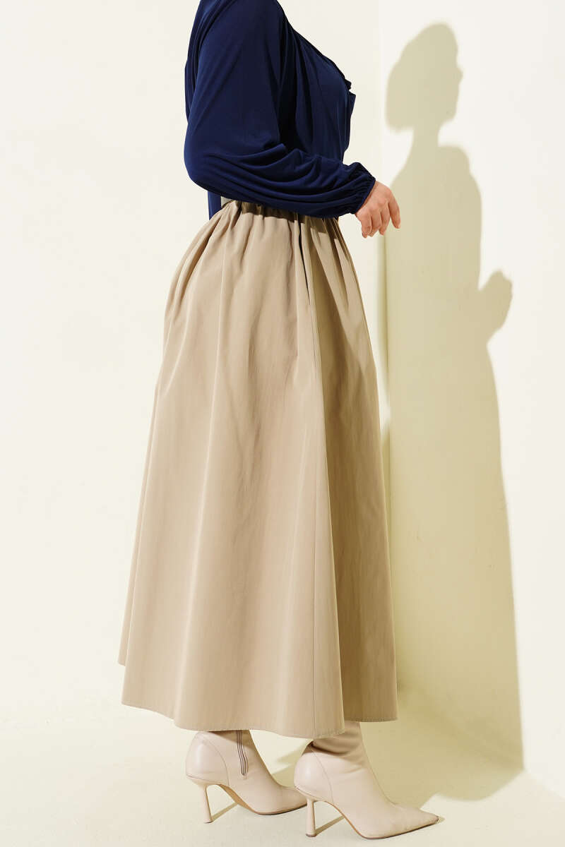 Fermuarlı Kemerli Poplin Etek Mürdüm