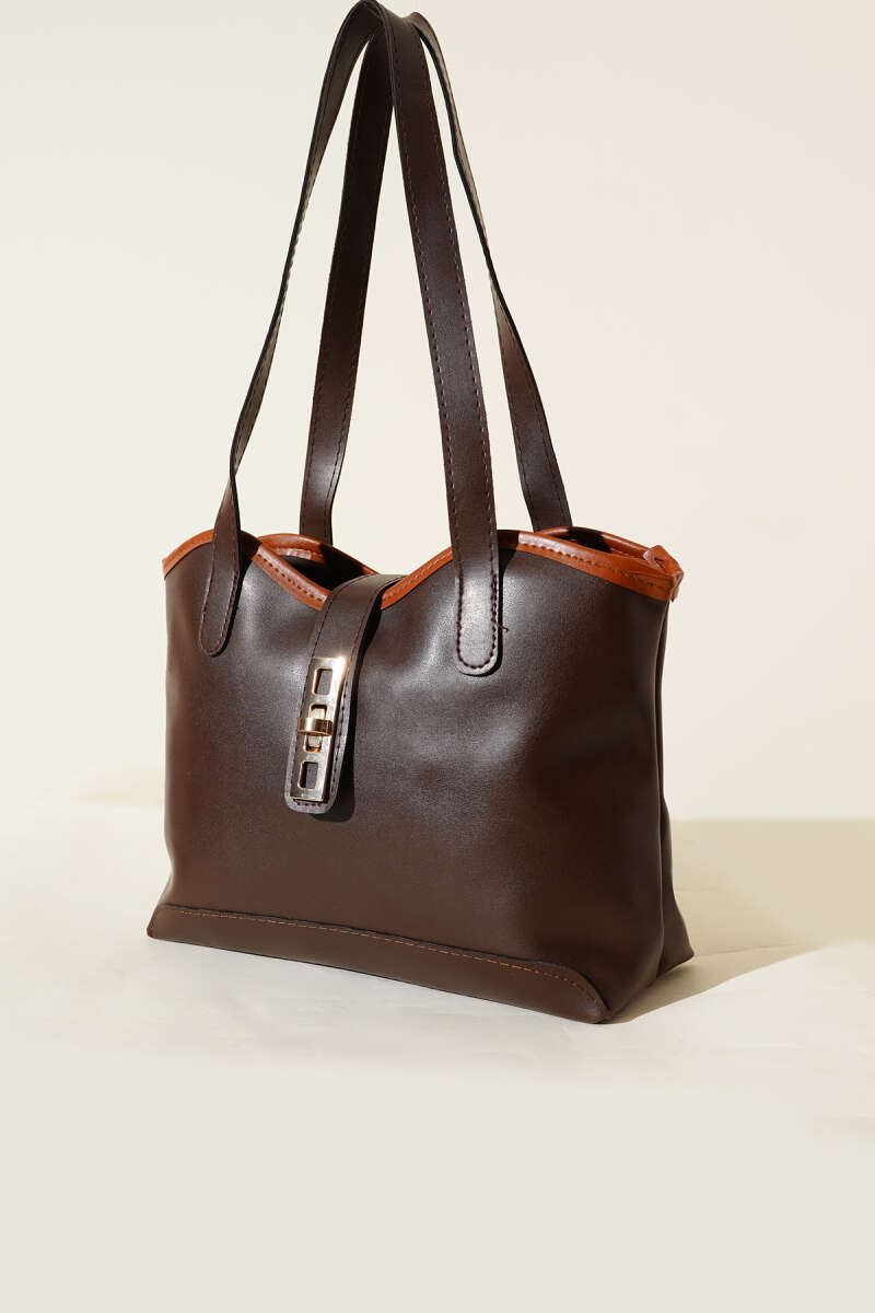 Mini Cüzdan Detaylı Uzun Kulplu Çanta Acı Kahve