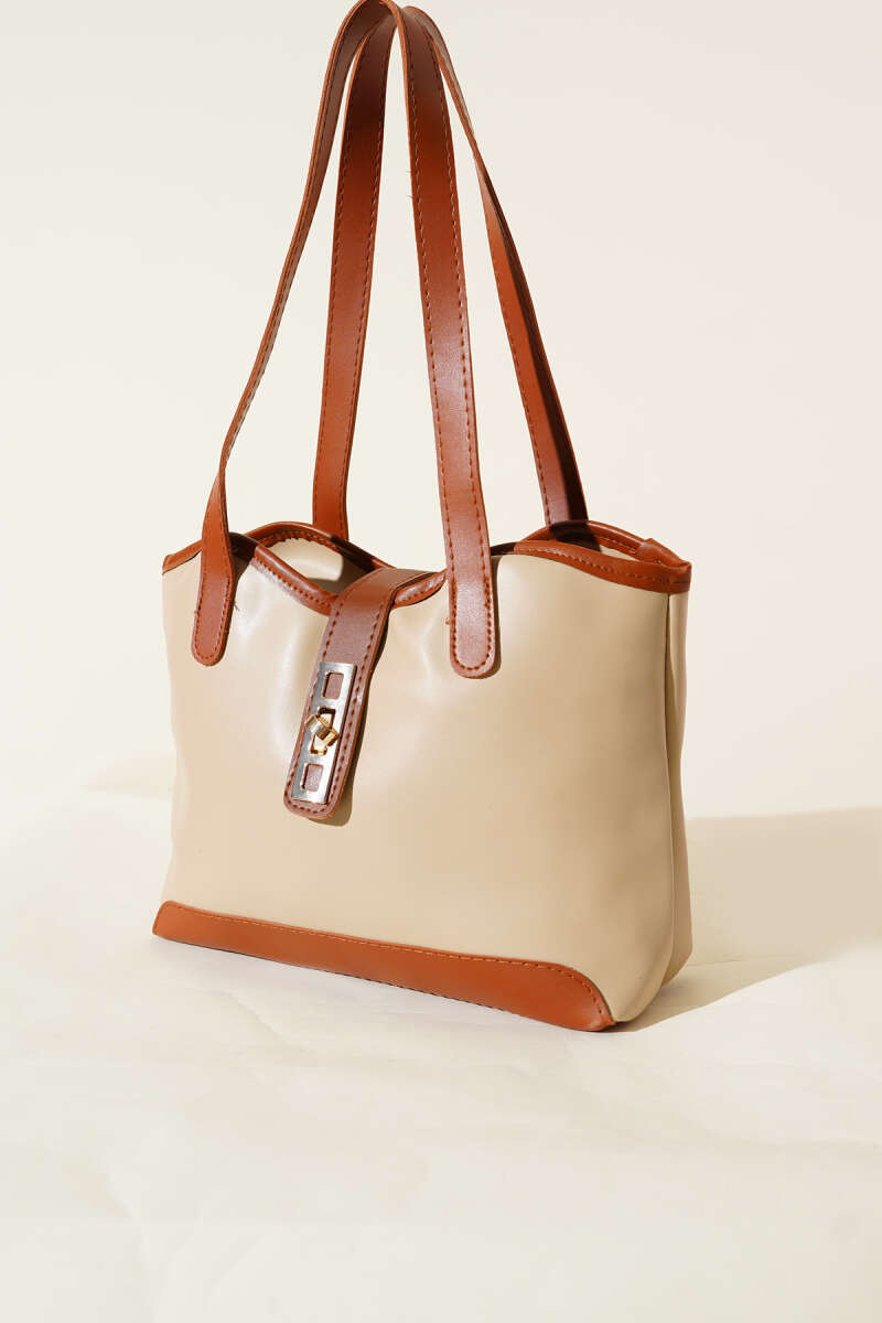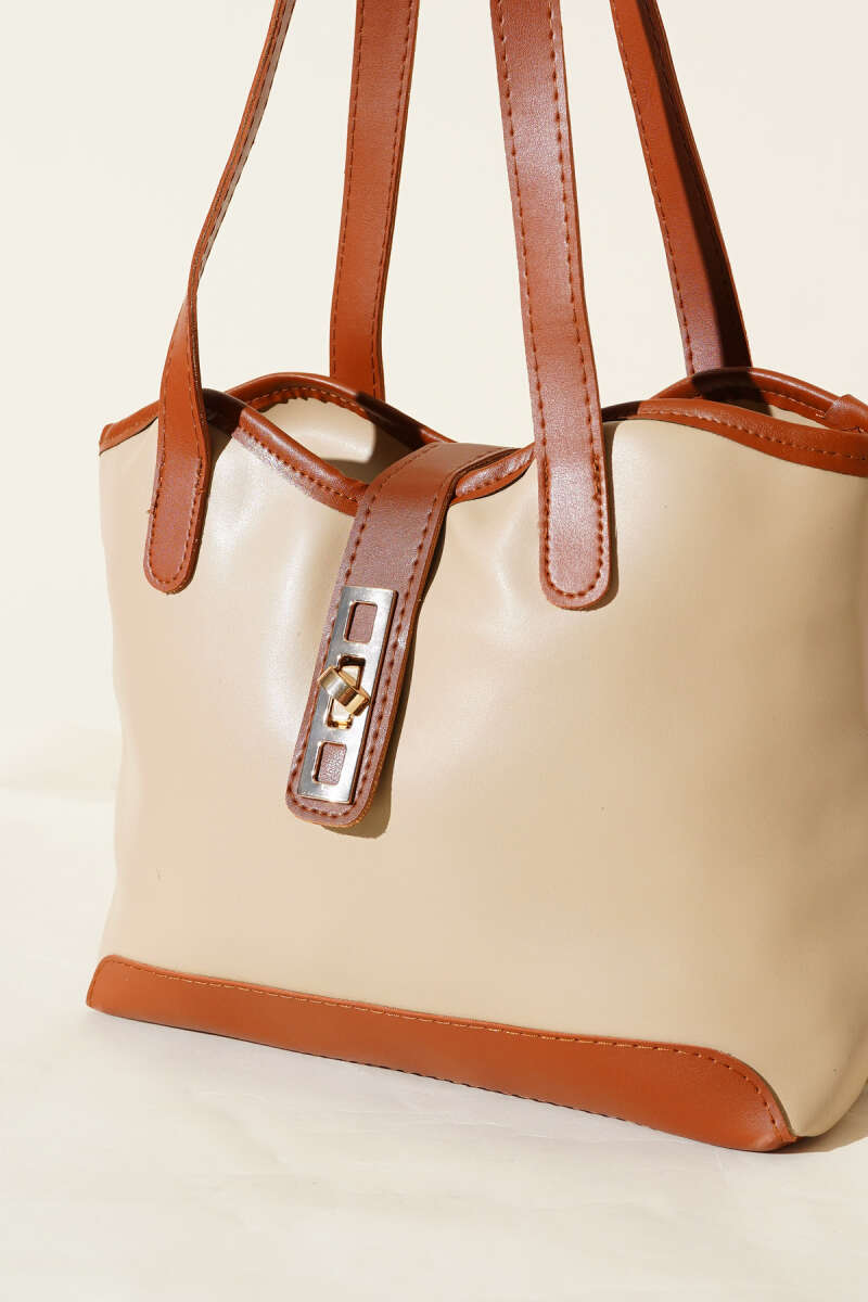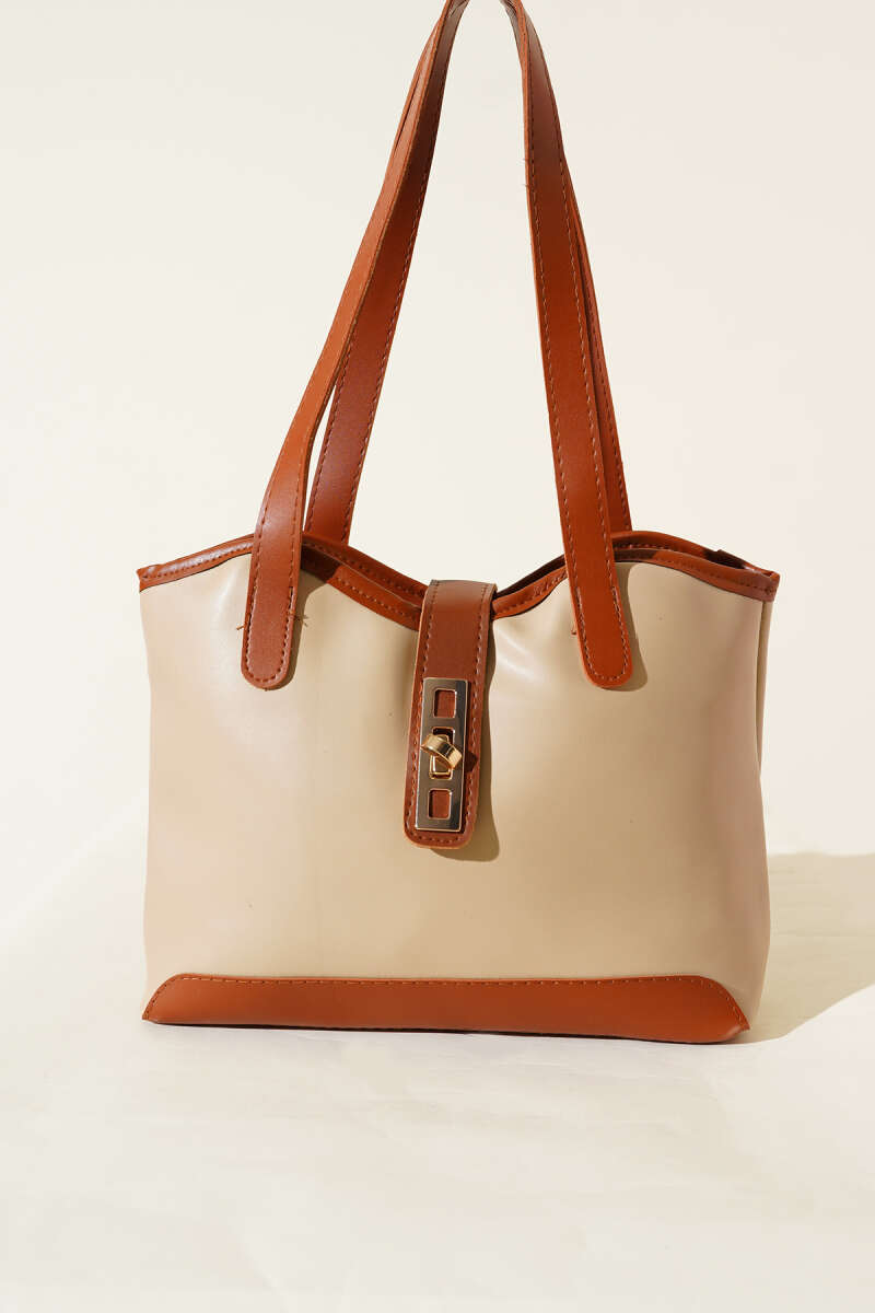Mini Cüzdan Detaylı Uzun Kulplu Çanta Bej