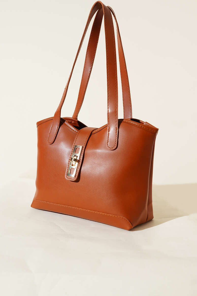 Mini Cüzdan Detaylı Uzun Kulplu Çanta Acı Kahve