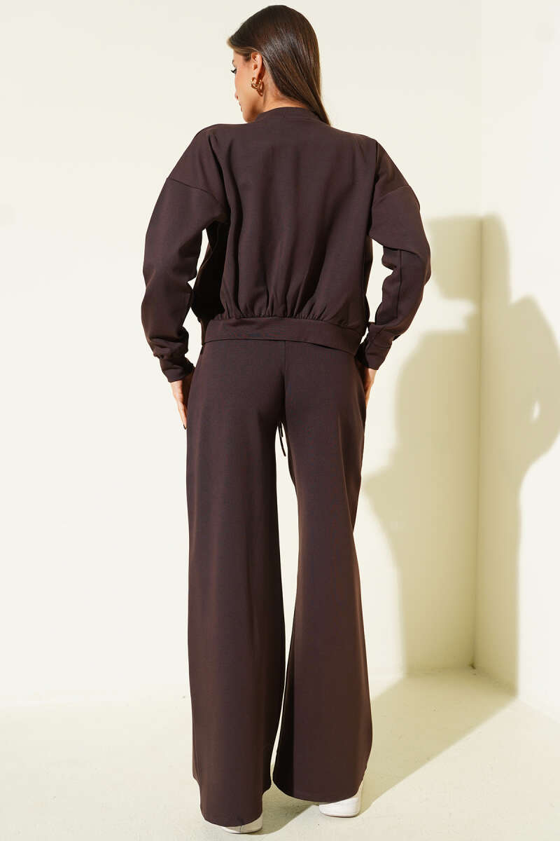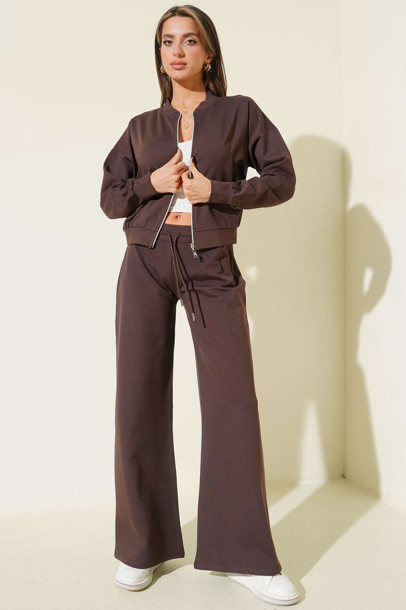 Fermuarlı Bel Lastikli İkili Takım Kahve