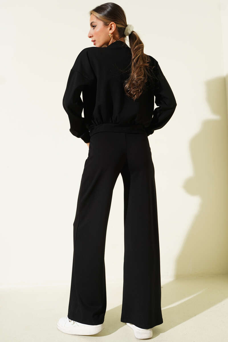 Fermuarlı Bel Lastikli İkili Takım Siyah