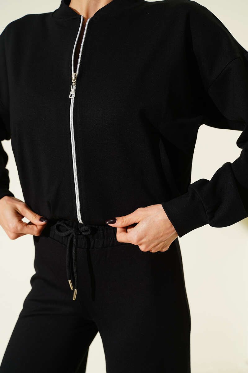 Fermuarlı Kısa Hırkalı İkili Takım Siyah