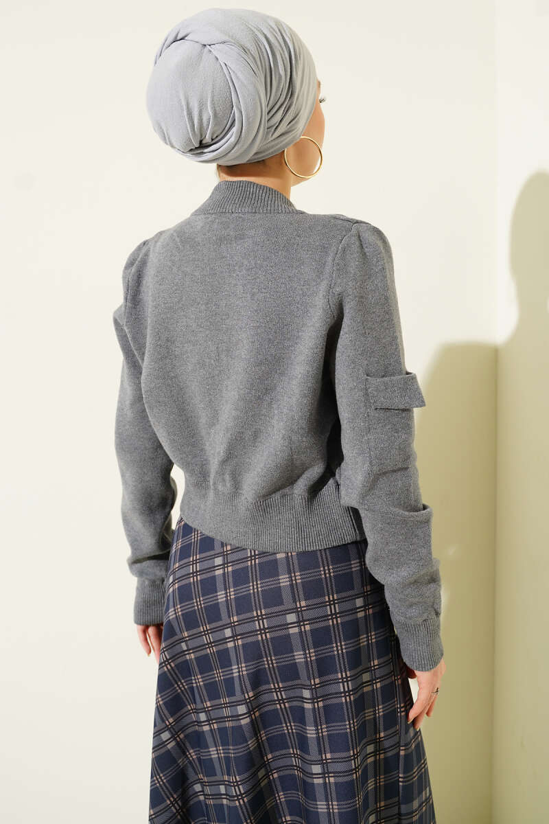 Cepli Çizgi Detaylı Triko Hırka Kahve
