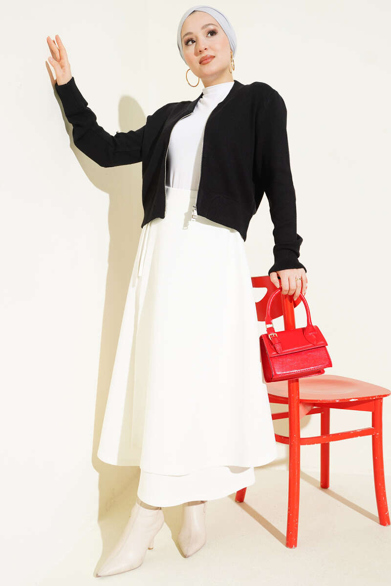 Taş Düğmeli Sakallı Yumoş Hırka Ekru