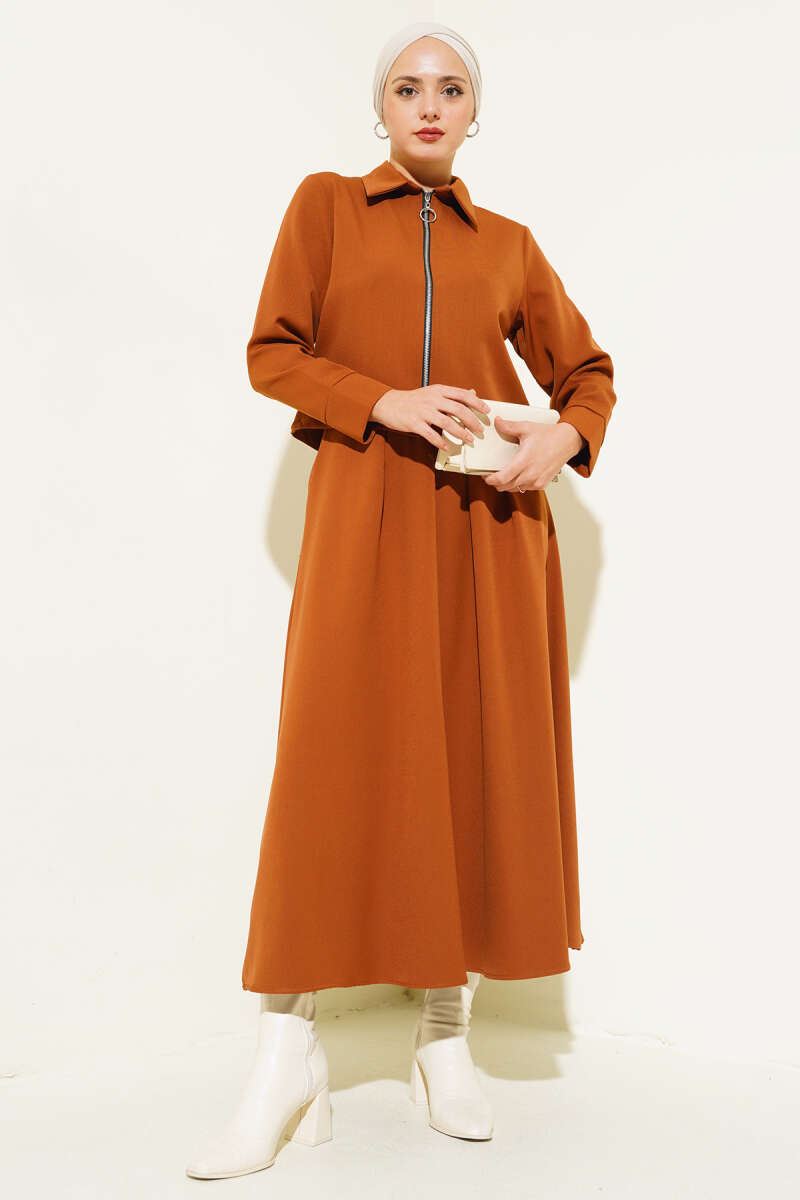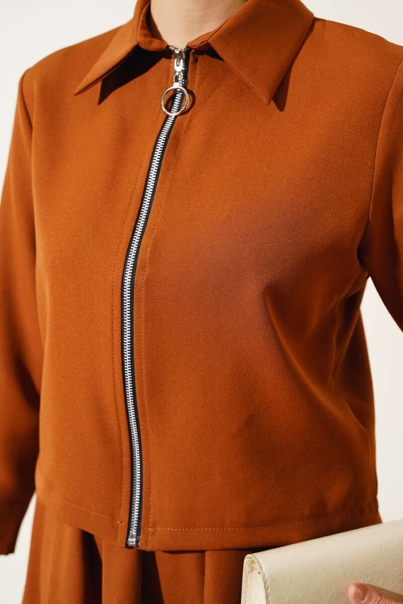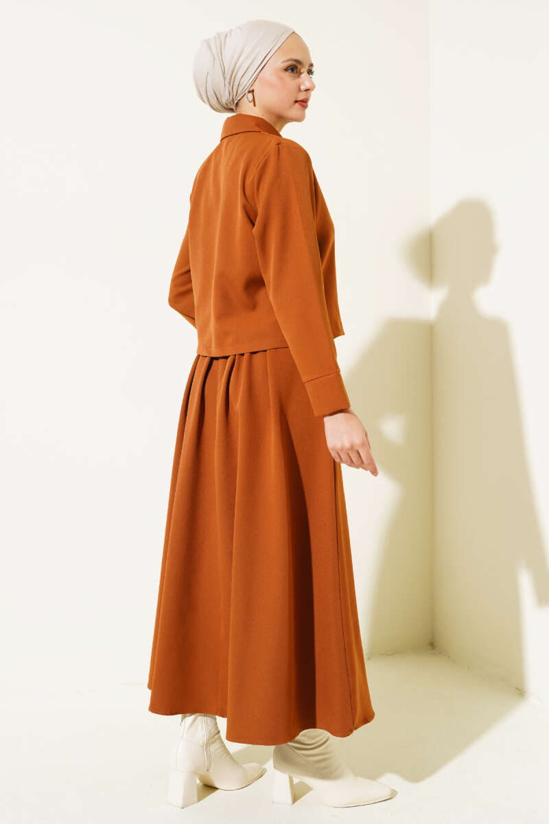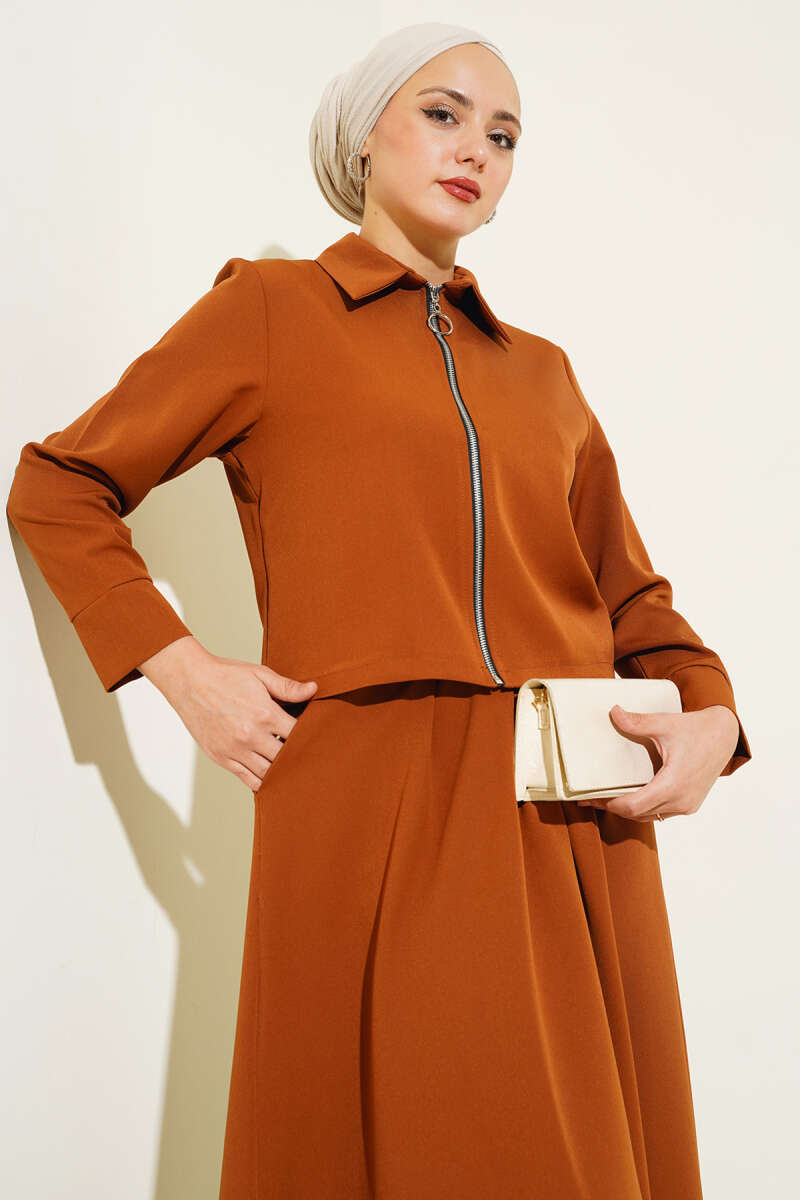 Fermuarlı Kloş Etekli İkili Takım Taba