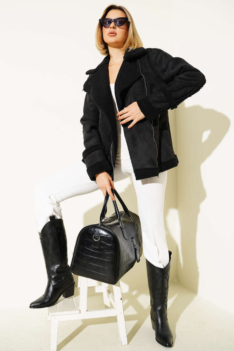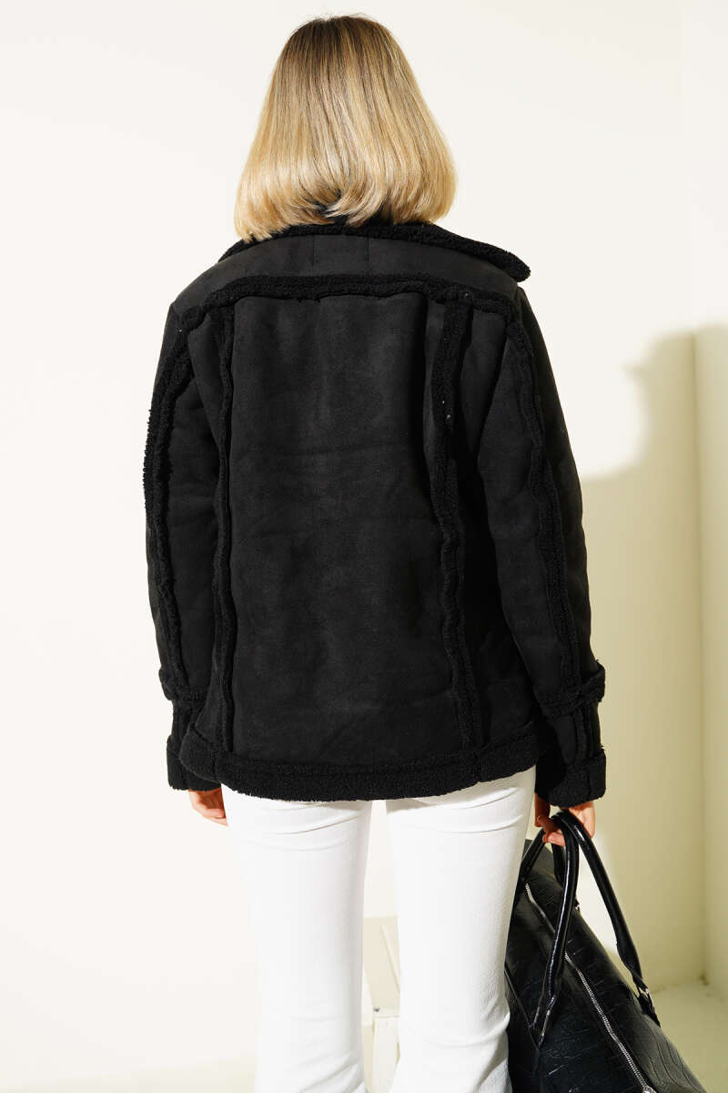 Kürk Yakalı Fermuarlı Kapitone Mont Füme