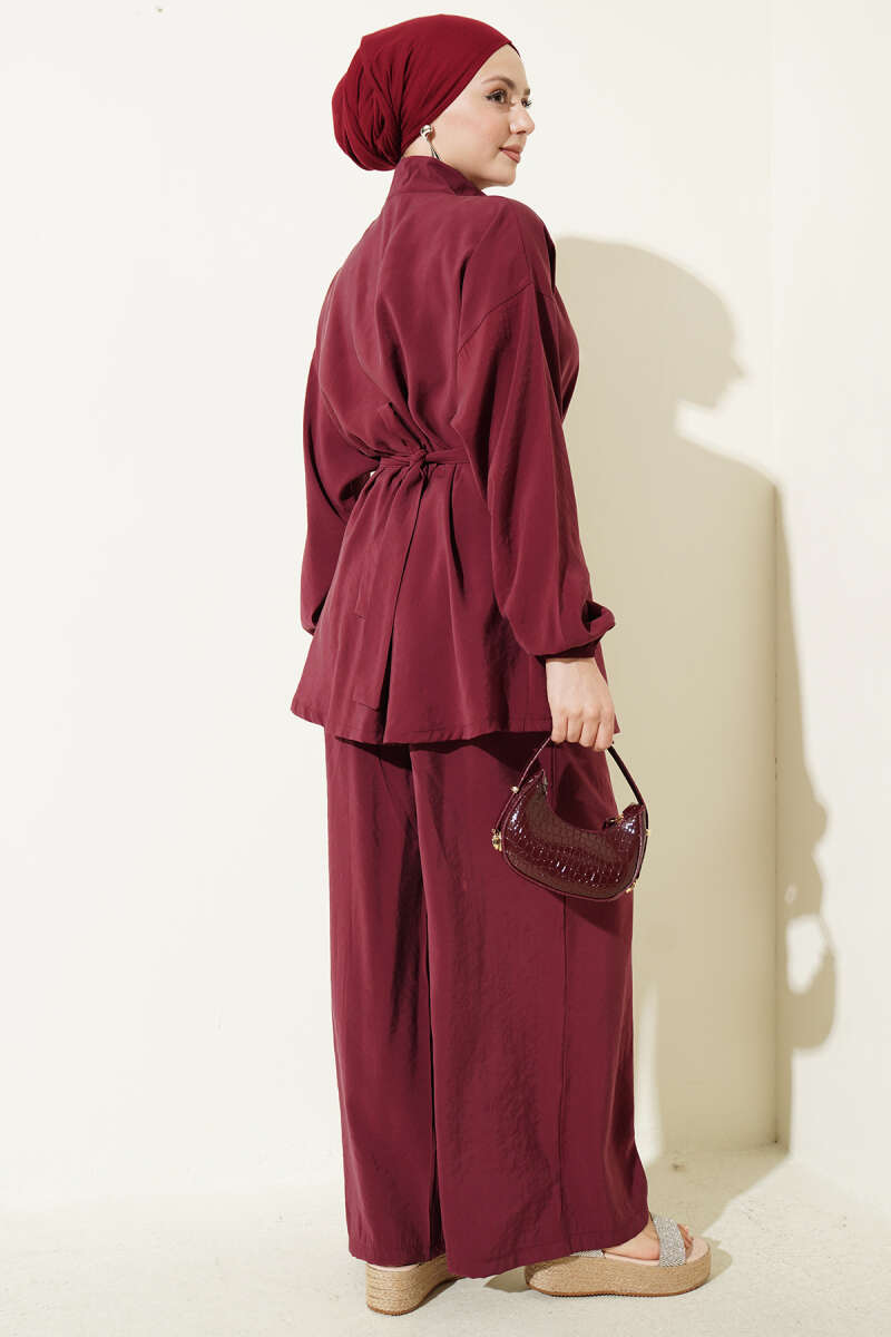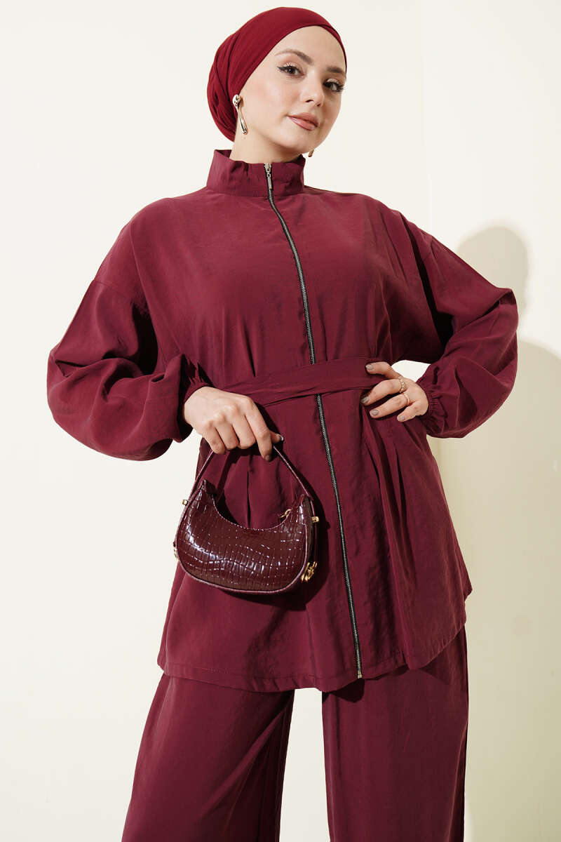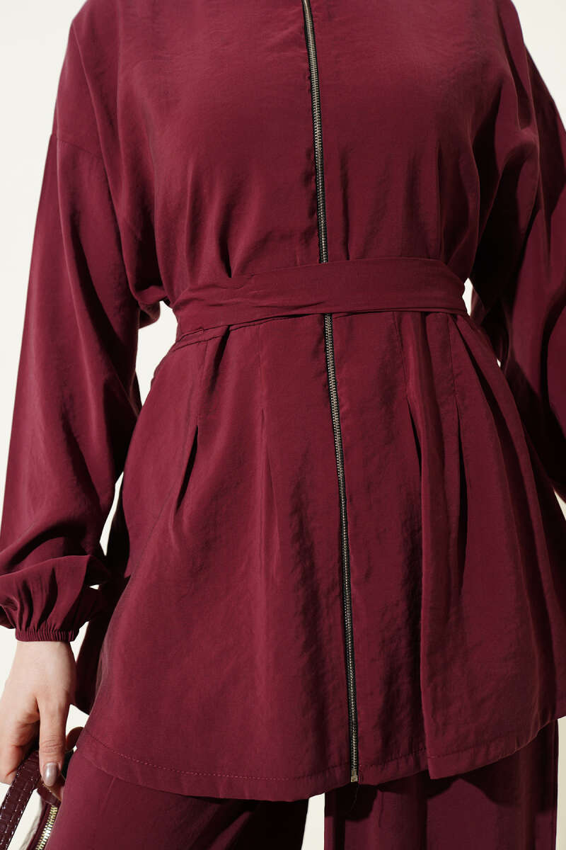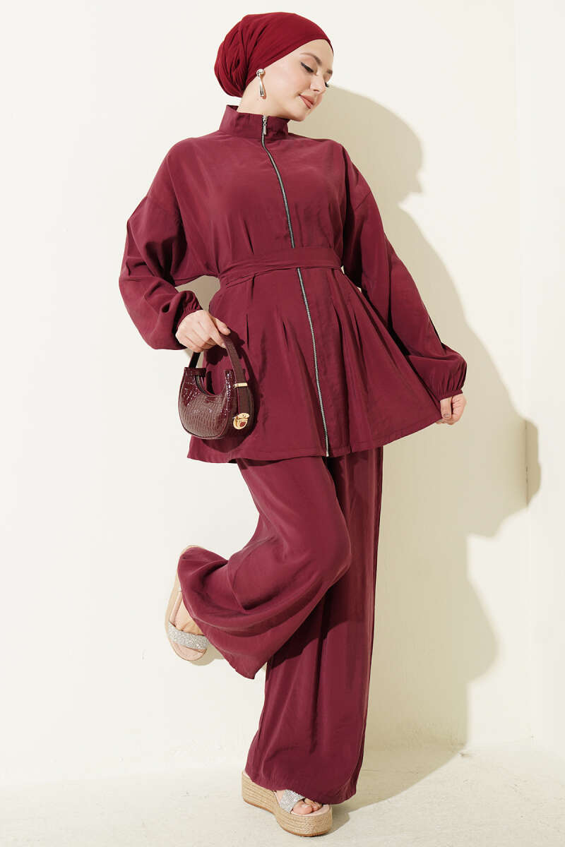 Fermuarlı Kuşaklı Modal İkili Takım Bordo