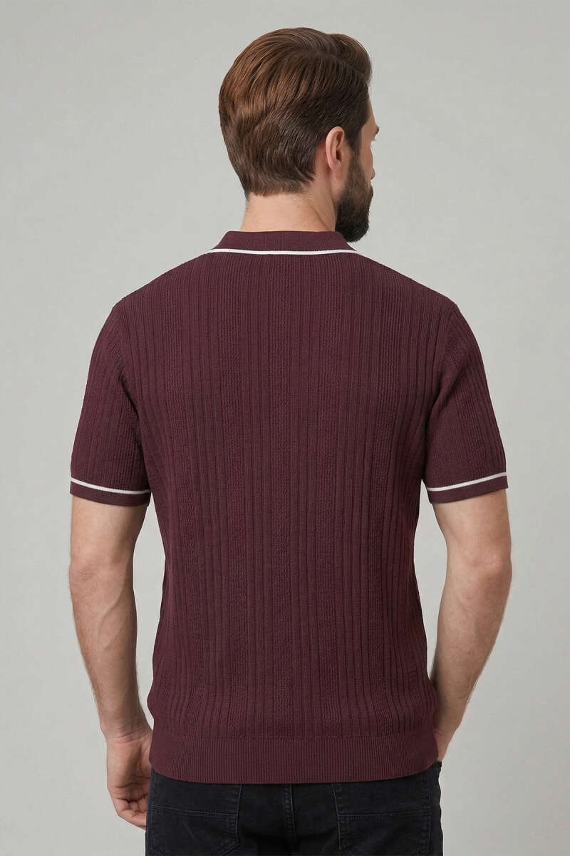 Fermuarlı Merserize T-shirt Bordo
