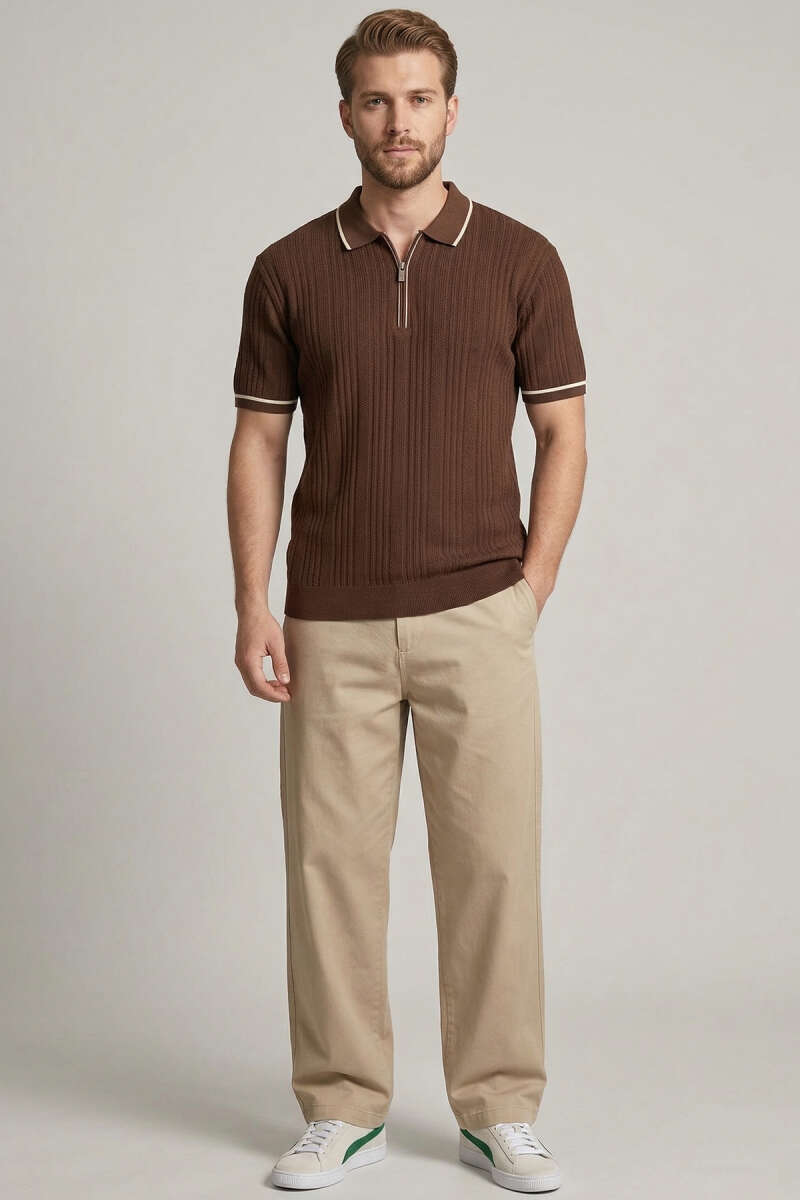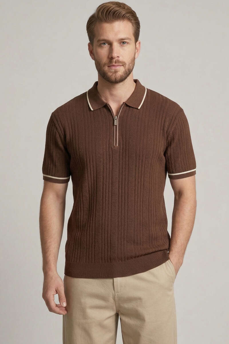 Polo Yaka Im Possible Baskılı Erkek T-shirt Kahve