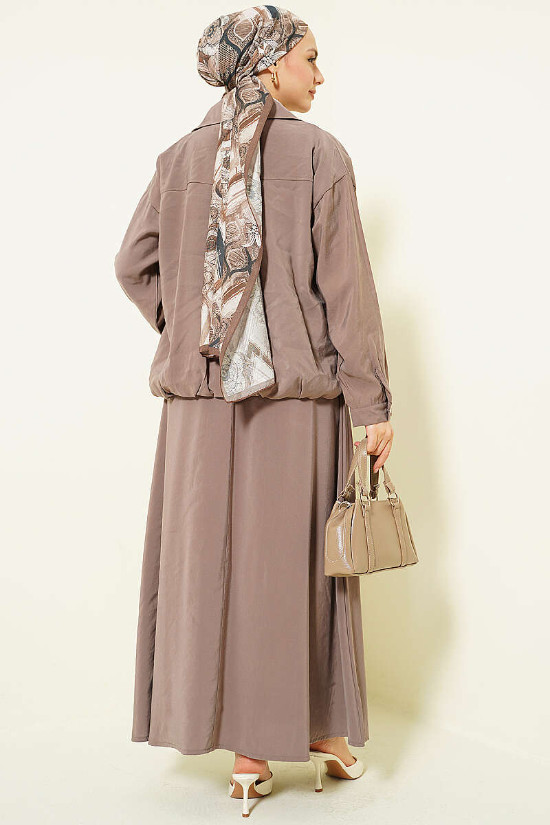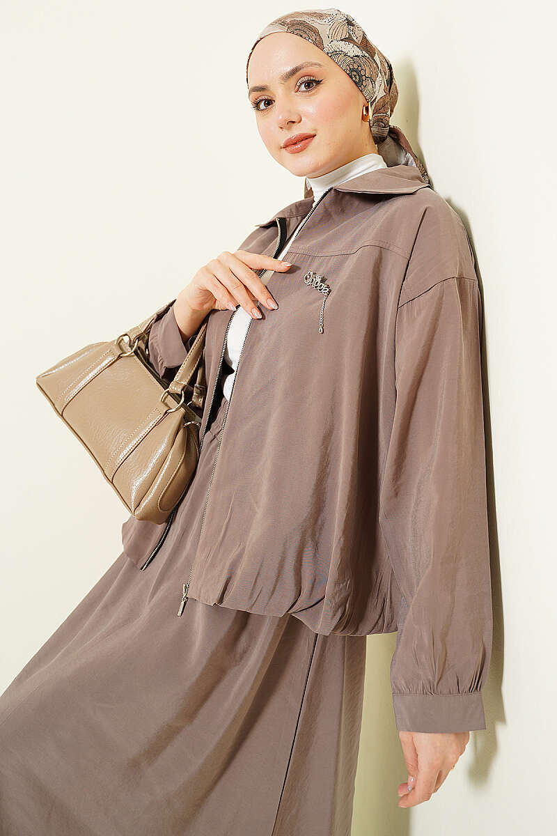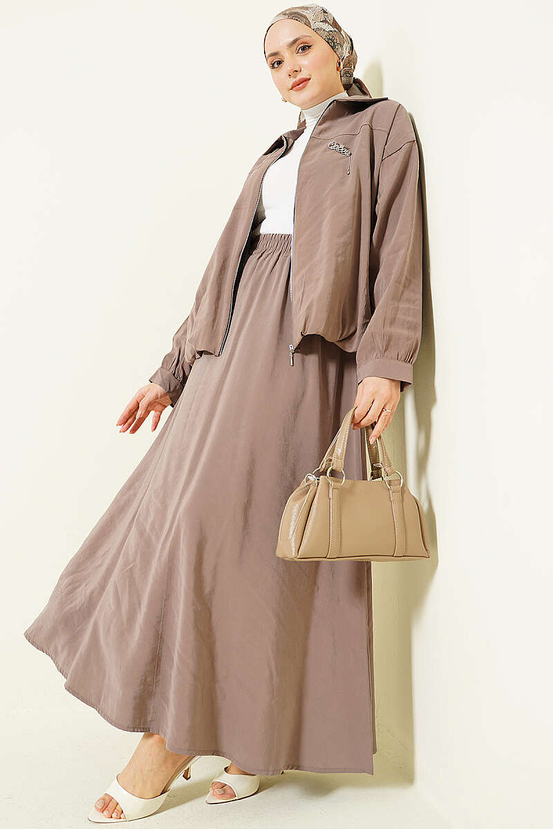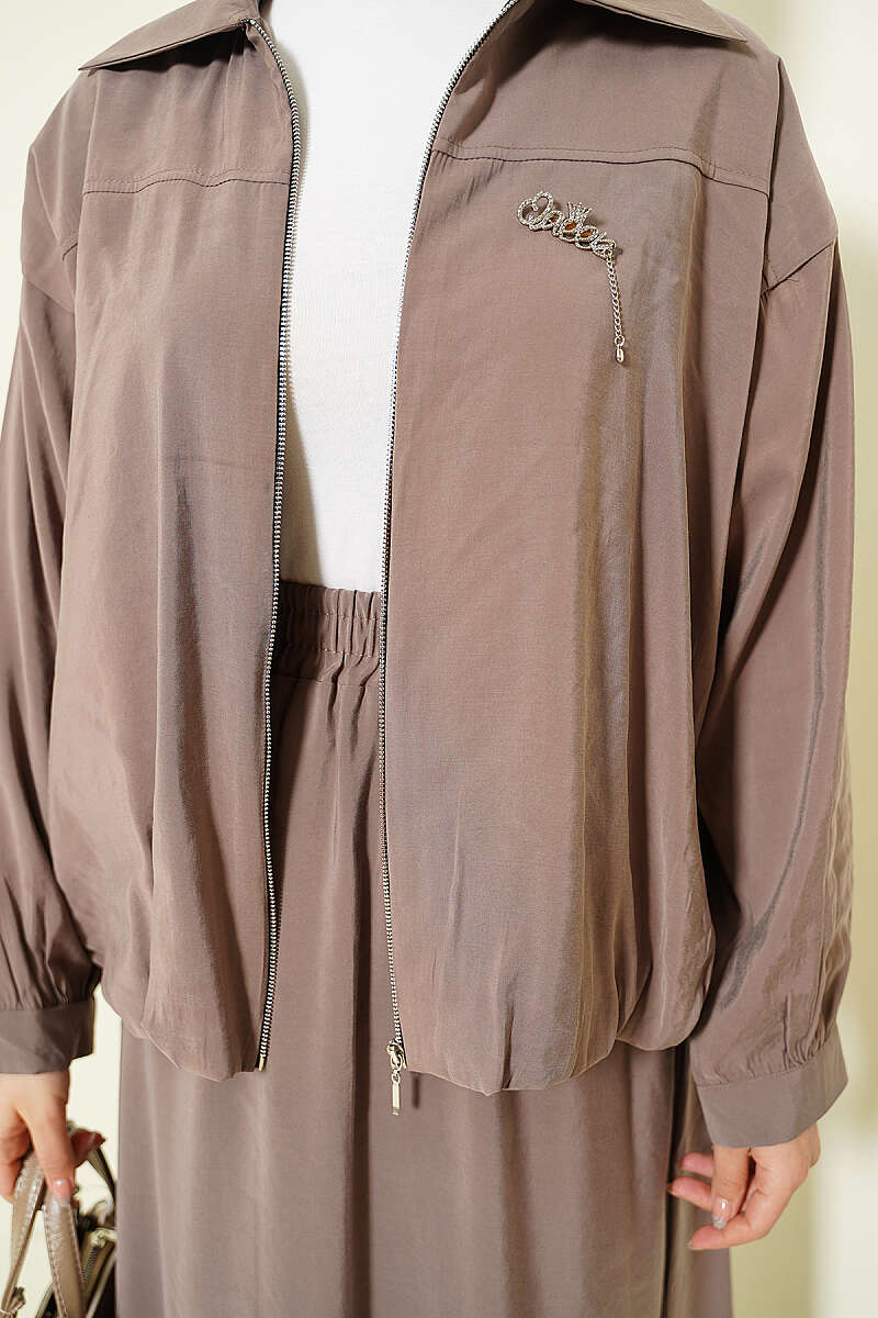 Fermuarlı Modal Etekli İkili Takım Vizon