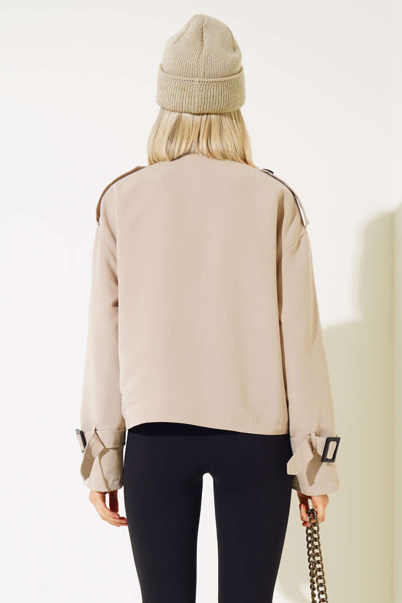 Bileği Metal Düğmeli Body Bej