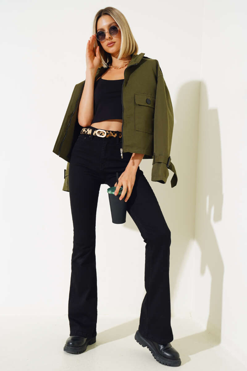 Büzgü Kuşaklı Siyah Kap