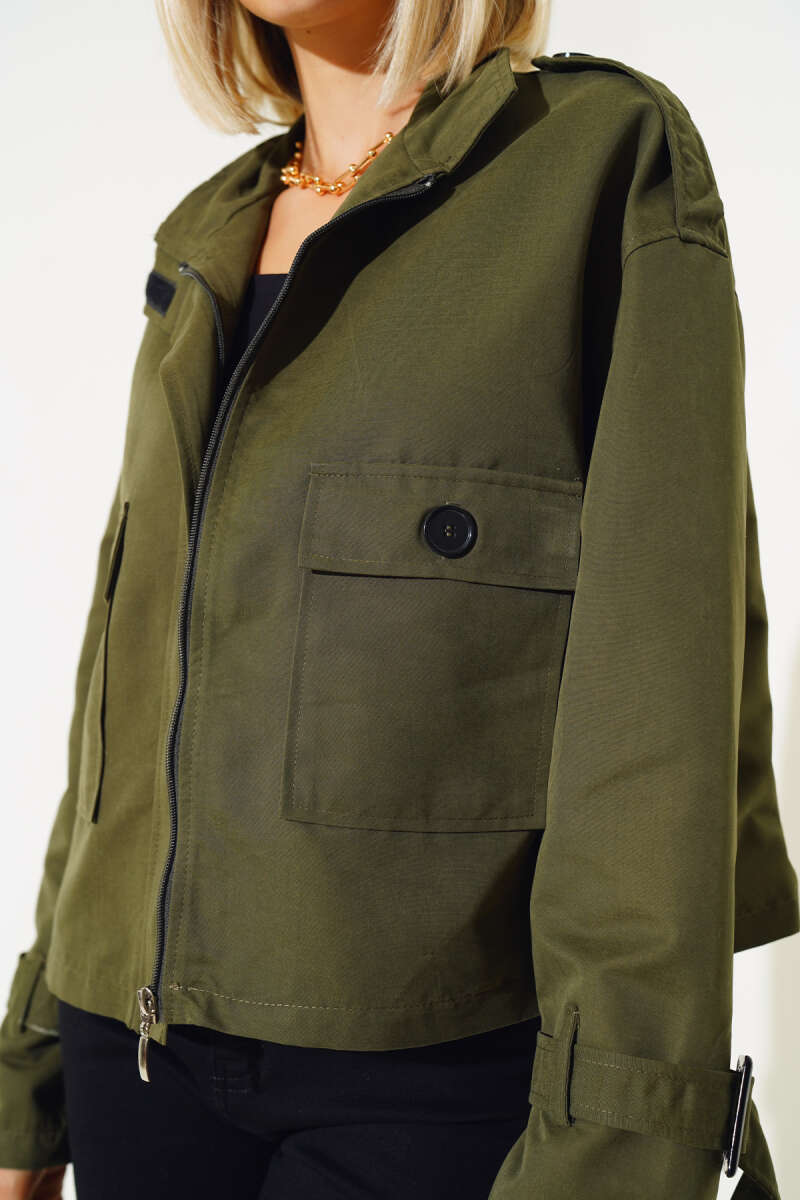 Göğüs Armalı Kısa Peluş Ceket Ekru