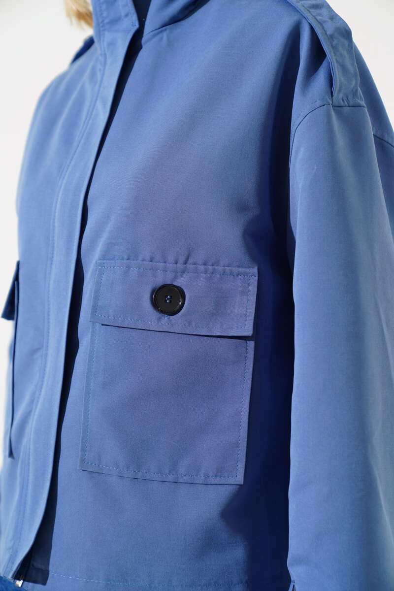 Çizgili Göğüs Cepli Crop Gömlek Pembe