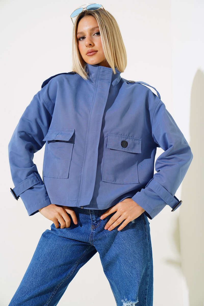 Göğüs Armalı Kısa Peluş Ceket Ekru