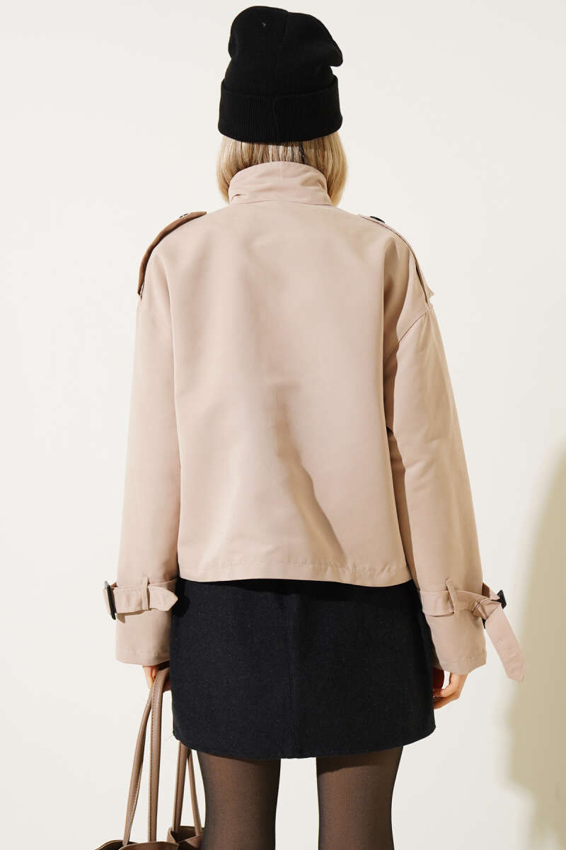 Çıtçıt Düğmeli Kürk Mont Ekru