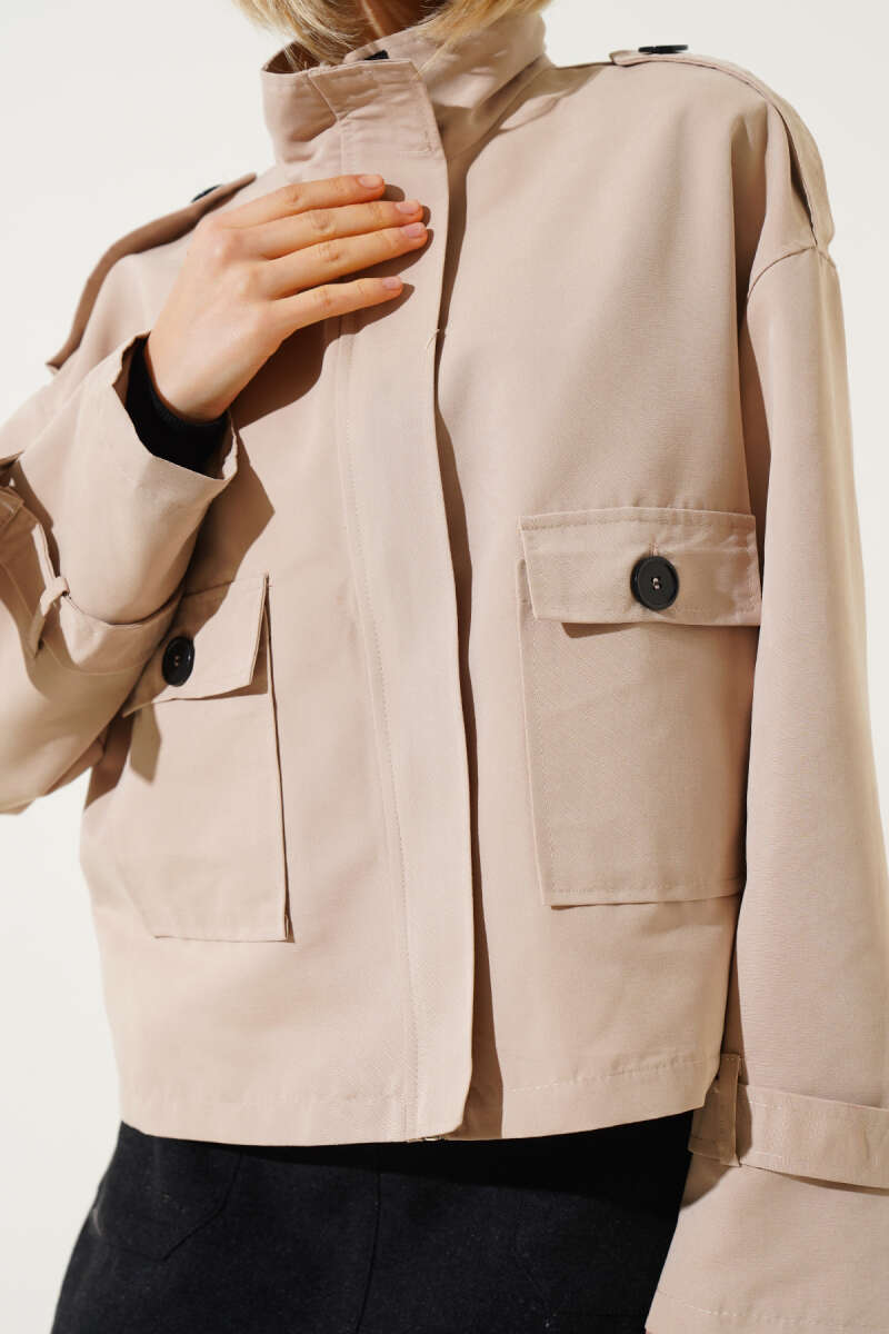 Gold Broşlu Cepli Kaşe Kaban Bej