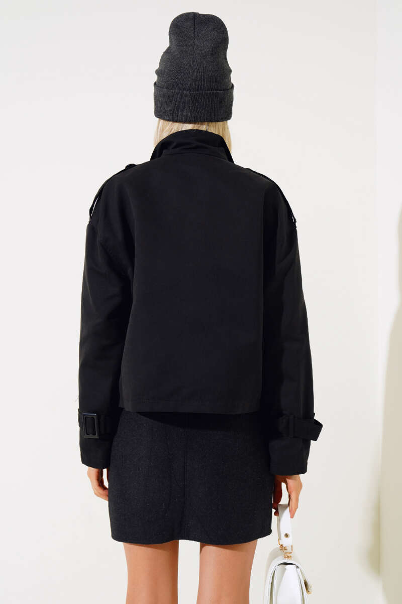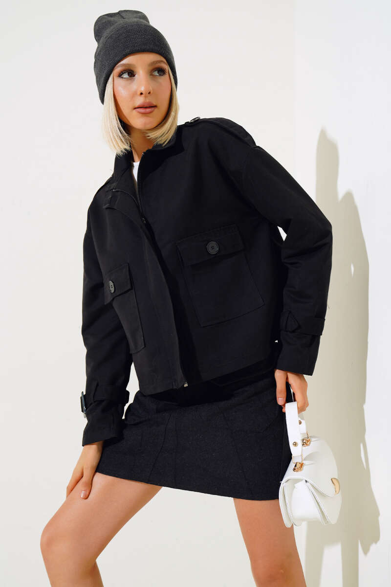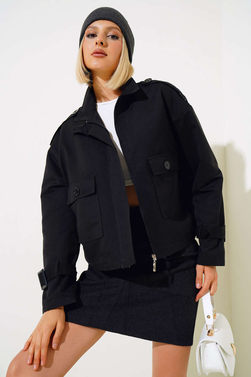 Büzgü Kuşaklı Siyah Kap