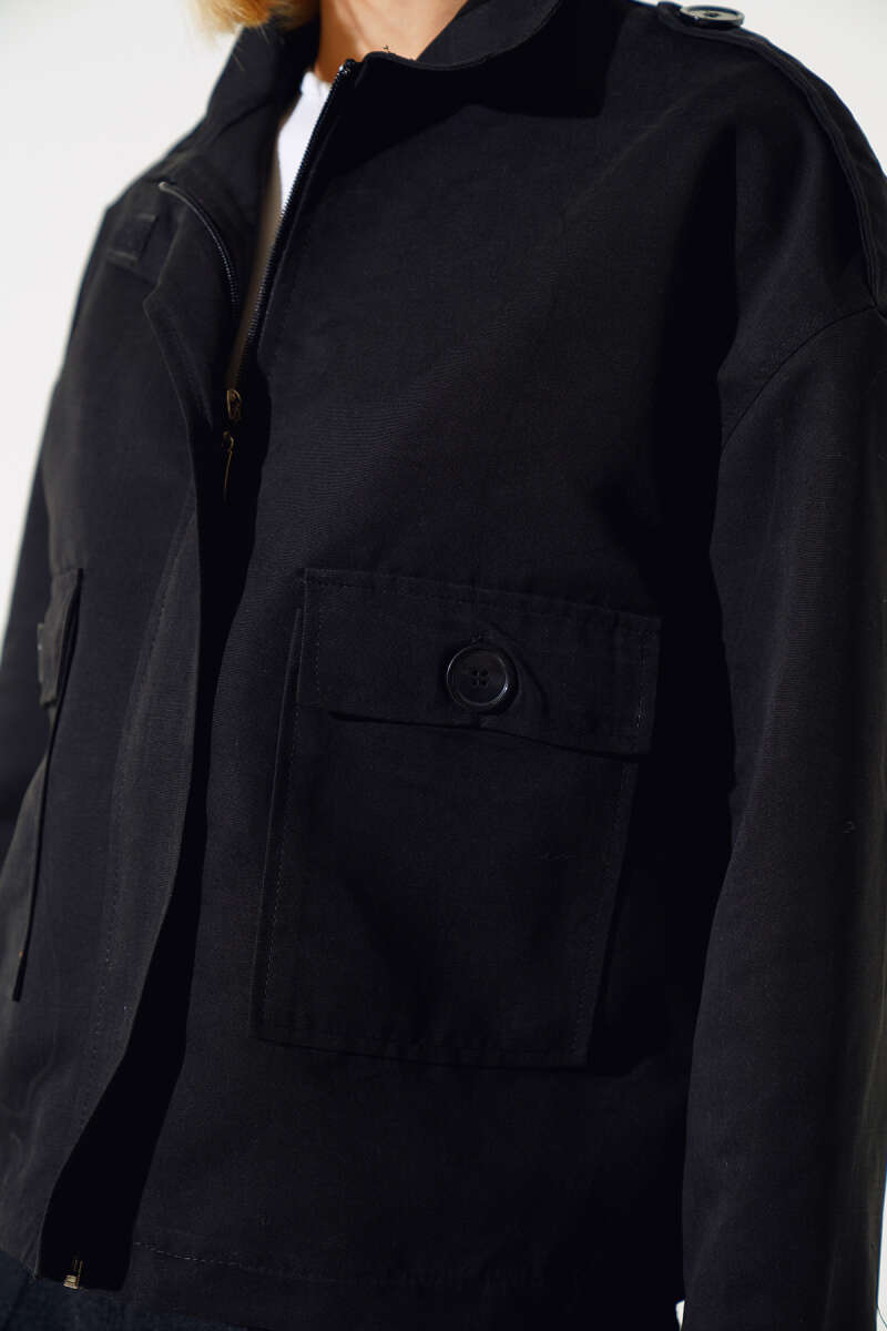 Metal Düğmeli Sakallı Hırka Siyah